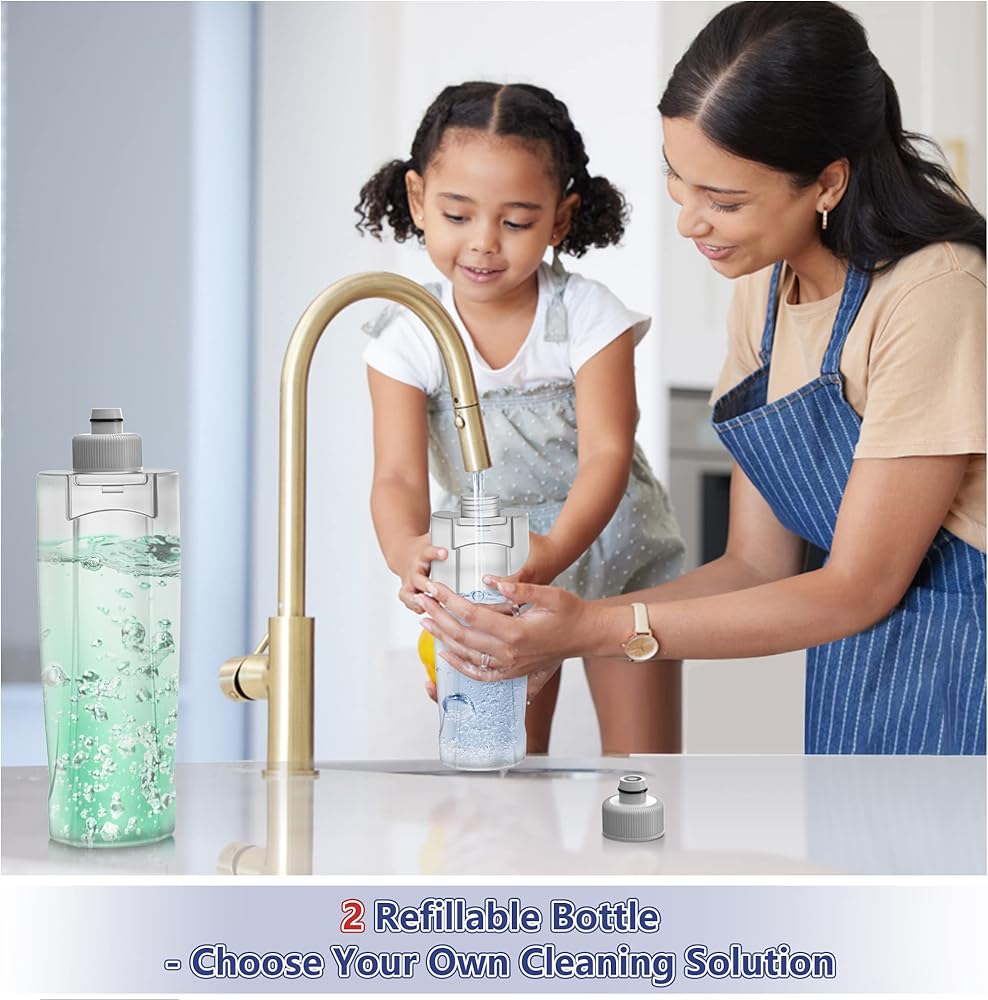 فوهة الرش موجودة بالقرب من قاعدة المقبض، لذلك يتم رش السائل أمام رأس الممسحة على الأرض، والتقاط شعر الكلب وتوفير الحاجة إلى إخراج الممسحة والدلو في كل مرة، كما أن حاويات السوائل القابلة لإعادة الملء سعة 1 × 410 مل تعني أنه يمكنك وضع سائل الغسيل لبلاط المطبخ في ثم يضاف إلى معالجة الخشب للأرضيات الخشبية. يبلغ طول المقبض حتى الأرض حوالي 47 بوصة، ورأس الممسحة حوالي 14 بوصة × 4 بوصة.