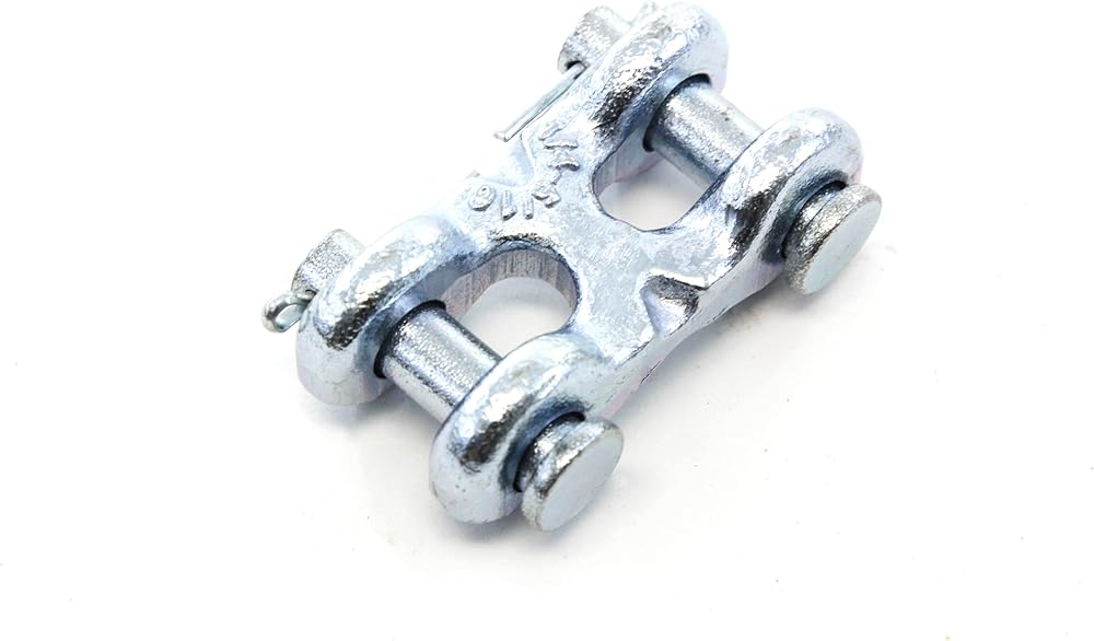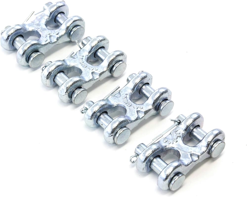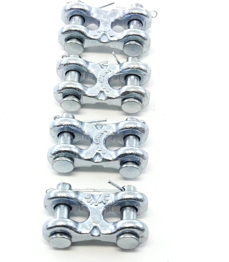 Includes: (4) heavy duty twin link clevis repair link. Twin clevis link. Industrial grade heavy duty material. Size: 1/4” – 5/16”. Capacity: 3900 LBS. Weather Resistant: Coated for rust and weather resistance. One Year Guarantee.