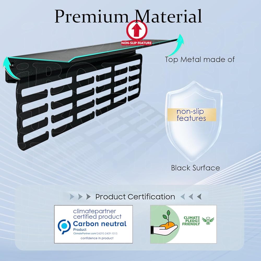 【سعر الصفقة】جميع شماعات الحائط على الرف مصنوعة من معدن ممتاز عالي الجودة مع أعلى مستوى من المواد المتينة المعلقة المتوفرة في السوق - أقوى 4 مرات من المواد الأخرى. يمكّن التصميم القوي لرف عرض الكأس والميداليات من الاحتفاظ بسعة كبيرة تتراوح من 22 رطلاً إلى 33 رطلاً (10 كجم إلى 15 كجم). إنه أقوى من عرض شماعات ميداليات السوق. لا يوجد عرض آخر لشماعة الميداليات مع رف يستخدم هذه المادة الممتازة لضمان الجودة