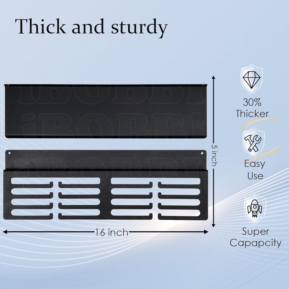【خامة عالية الجودة】يمكن استخدام رف كأس ibobbish للجدار في الداخل أو الخارج، أو المدرسة، أو ورشة العمل، أو المكتب، أو المنزل أو حتى على سطح خشبي أينما يوجد سطح حائط. إنها تحمل الميدالية بشكل جيد بغض النظر عن أنها محملة بـ 40 ميدالية أو 60 ميدالية. يعتمد ذلك على حجم عرض الحبل، ويمكن تكرار نفس التعليق على نفس المساحة. تحمل الخطافات المعلقة الميداليات على الجوانب حتى لا تتلف ميدالياتك أو تتركها تنزلق