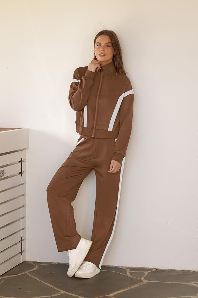 • يتميز بقميص طويل الأكمام بسحاب كامل وسروال رياضي واسع الساق، كلاهما مع جيوب مريحة، ومتوفر بلون كلاسيكي ثابت أو بتصميم فريد من نوعه.