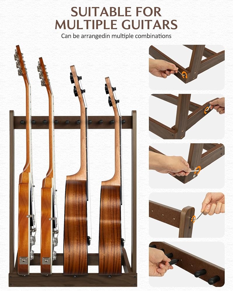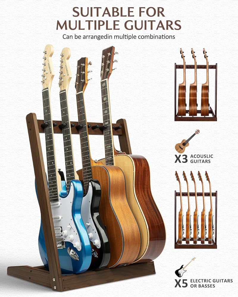 【مثالي للجيتار المتعدد】 - تم تصميم حامل الجيتار المتعدد هذا ليتحمل ما يصل إلى 5 جيتار كهربائي أو جيتار (أو 3 جيتار صوتي/كلاسيكي) في وقت واحد. تم تعديل ارتفاع الحامل وعرض القاعدة لاستيعاب مجموعة من الآلات الموسيقية التي يزيد حجمها عن 36 بوصة (3/4)، بما في ذلك ST وLP وdreadnought وجيتار الصالون والباس والبانجو. لاحظ أن بعض القيثارات ذات الشكل الفريد قد لا تكون متوافقة.
