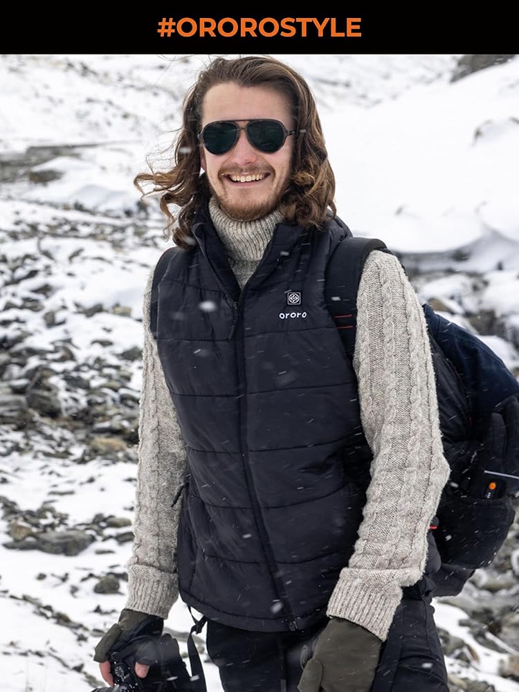 سترة ORORO للرجال قابلة للتدفئة (أسود، M) ووشاح مُدفأ (55 بوصة)