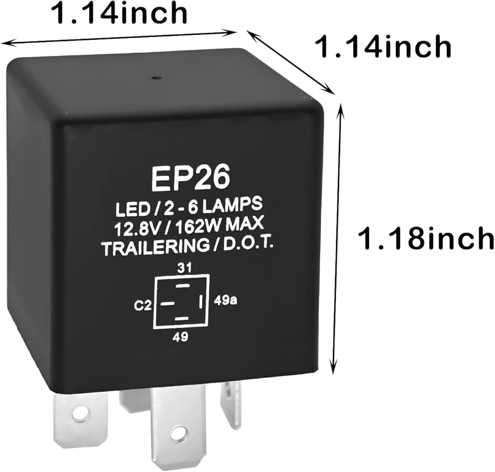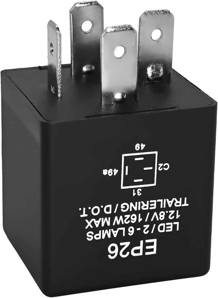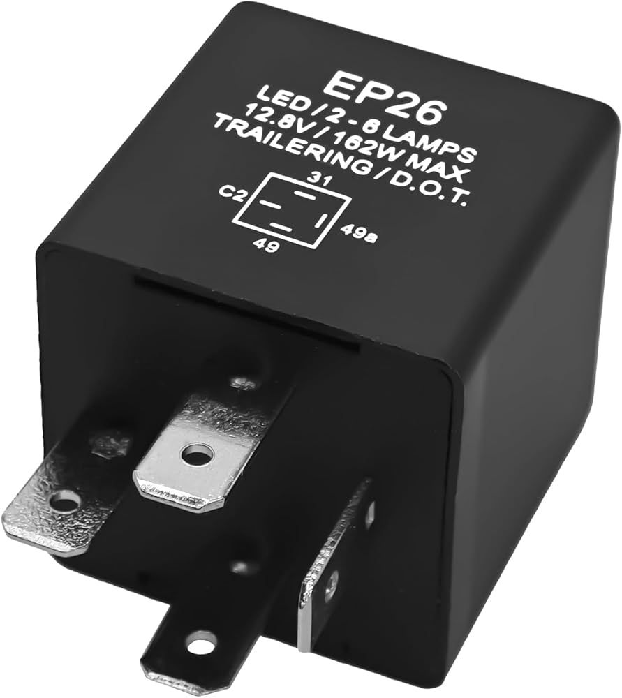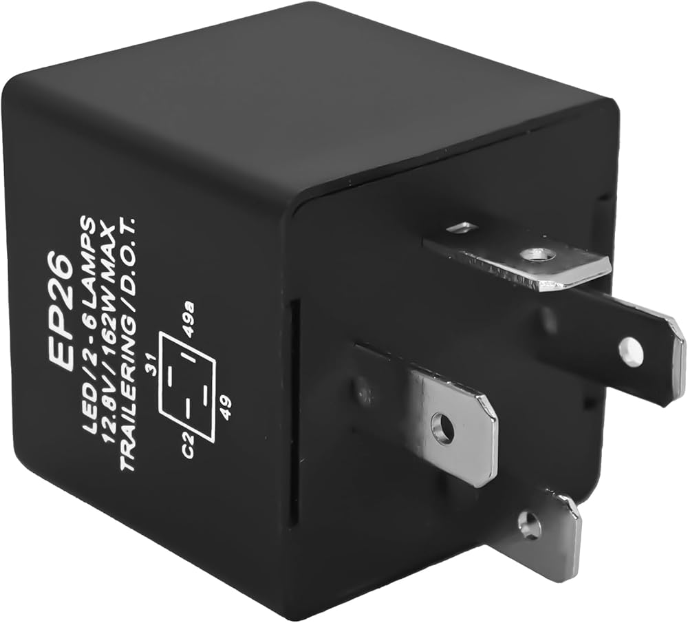 Upgrade your vehicle's lighting system with the EP26 LED Flasher Relay, a precision-engineered module designed to replace the original factory flasher relay. This 4-pin flasher relay is a must-have accessory if you've upgraded your incandescent bulbs to LED for turn signals, running lights, tail lights, and more.
