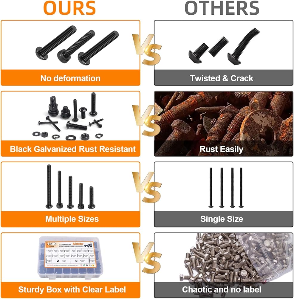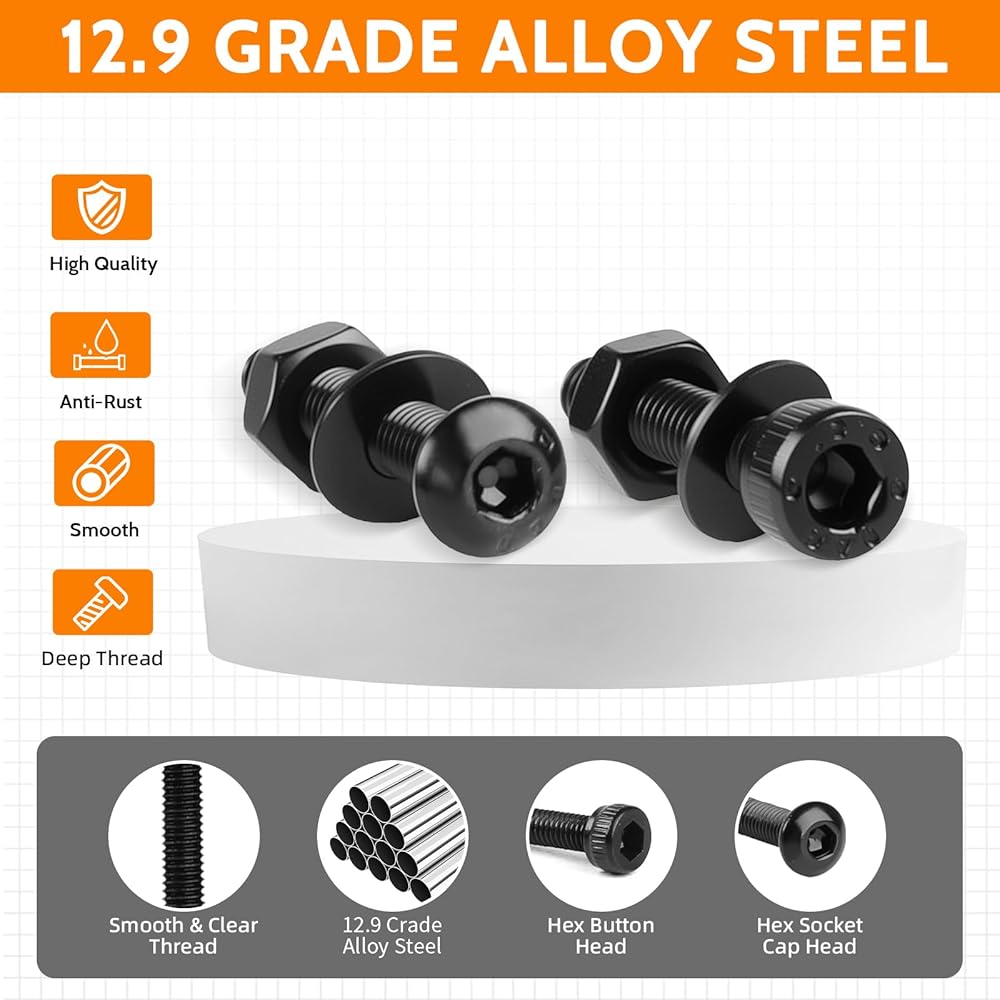 【 سبائك فولاذية مطلية بالزنك من الدرجة 12.9】مسامير وصواميل M3 مصنوعة من سبائك الفولاذ المطلية بالزنك من الدرجة 10.9، والتي تتميز بقوة عالية وجافة ونظيفة ومتفوقة ضد التآكل. تتميز مجموعة البراغي والصواميل M3 المجلفنة باللون الأسود بخيوط واضحة ودقيقة وقوة عالية ولا توجد نتوءات ومقاومة كبيرة للصدأ. يمكن تخزينها لفترة أطول وتستمر لفترة أطول من غيرها.