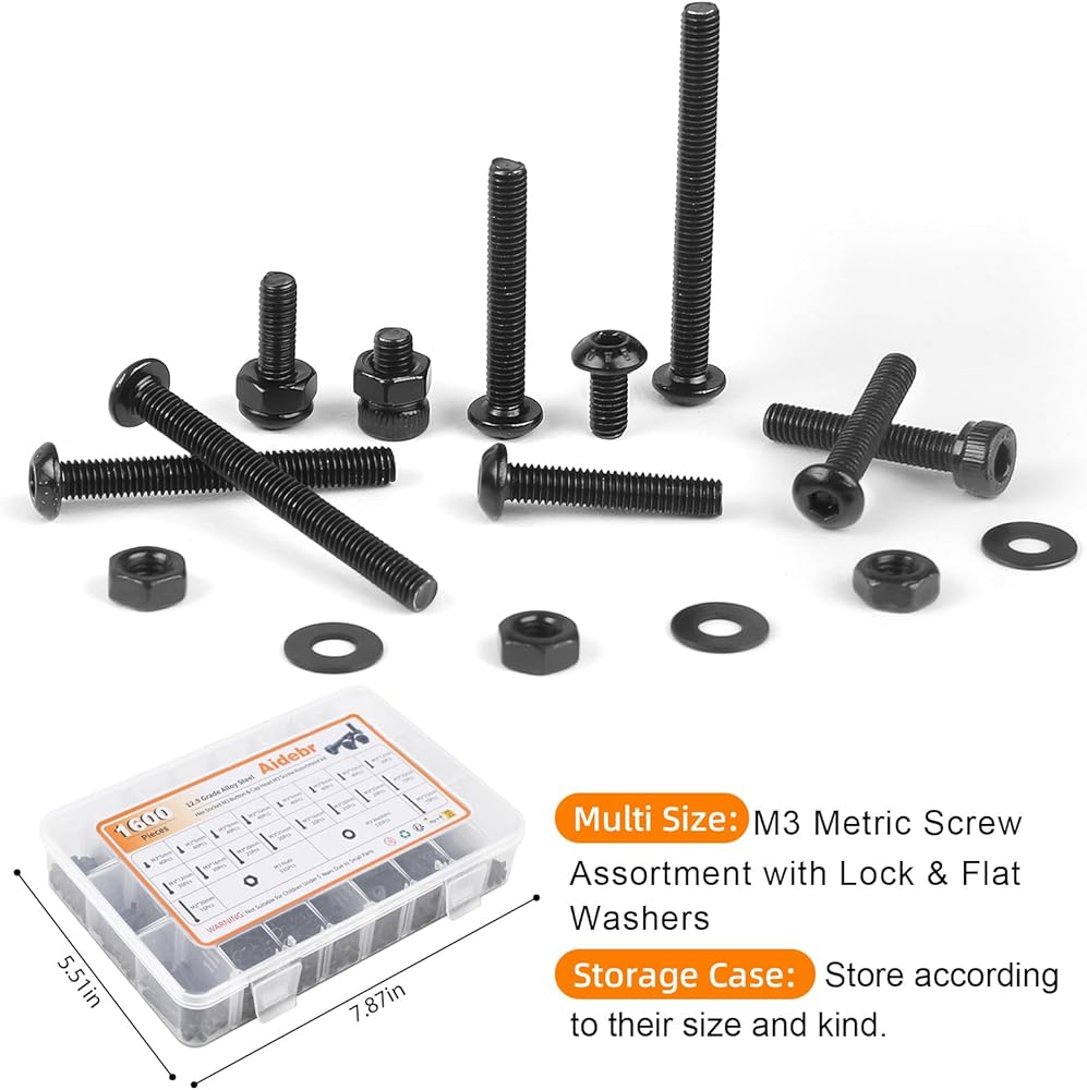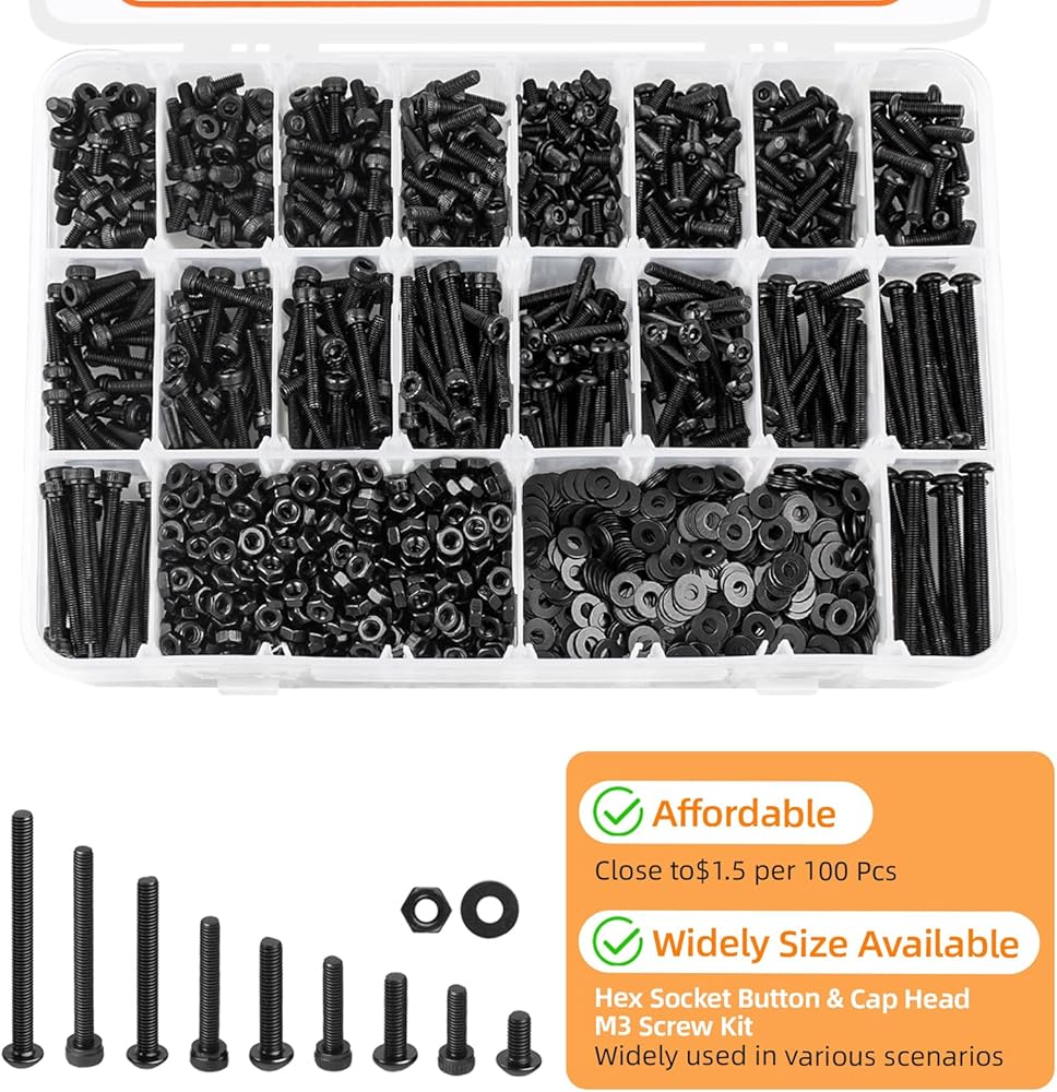 【مجموعة براغي M3 1600 قطعة】تأتي العبوة مع 1600 قطعة M3 مقبس زر سداسي ومجموعة براغي مترية لرأس الغطاء، والتي تتضمن أنواعًا من 18 براغي M3 بأحجام وأطوال مختلفة مع صواميل M3 وغسالات مسطحة لتلبية احتياجاتك المتنوعة.
