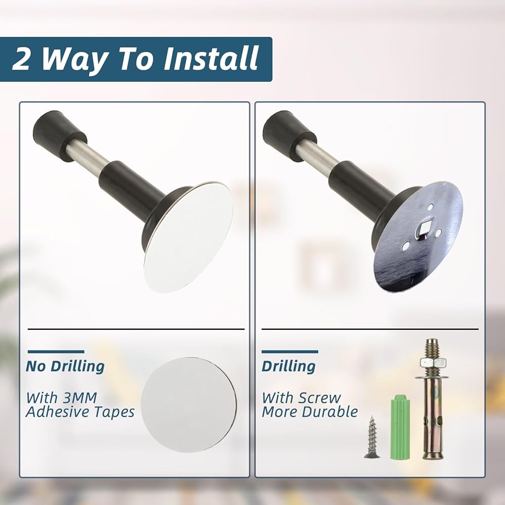 --The spring door stopper boasts a level of compatibility, adapting nicely to a wide range of surfaces; Secure it using screws onto uneven surface such as wood, plasterboard, cement or latex painted walls.