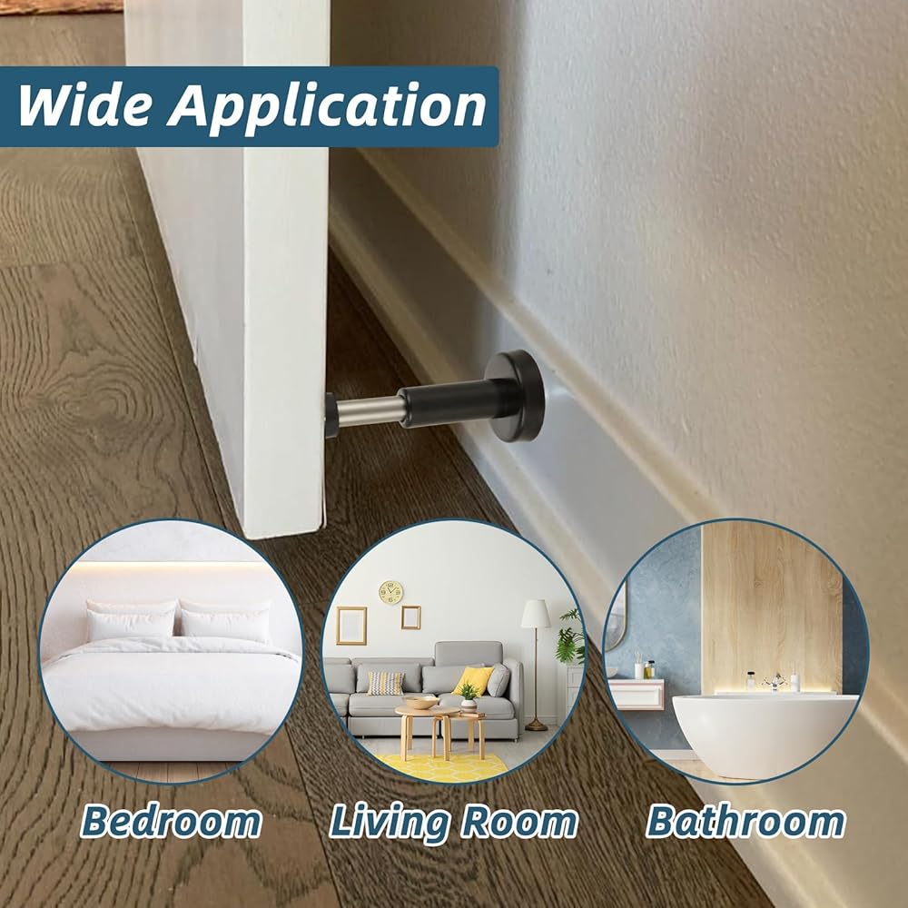 DAJAVE 4 Pack Spring Door Stoppers, Stainless Steel Door Stoppers for Bottom of Door, Hydraulic Shock Absorbent Technology,Black Door Stopper for Home Office