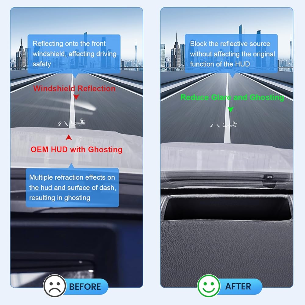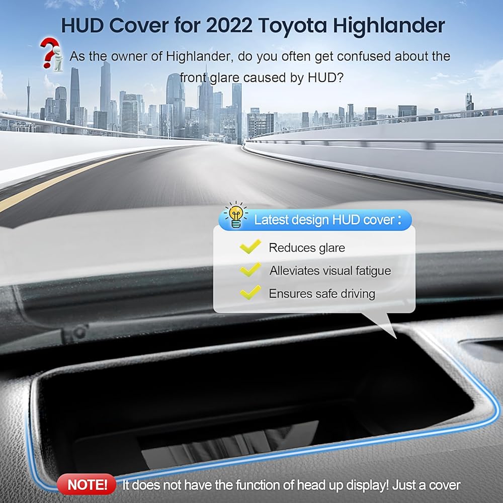 غطاء اتش يو دي: يعمل غطاء اتش يو دي المصمم حديثًا لسيارة كيه ام اف 2023 على حل مشكلة انعكاس شاشة العرض الأمامية لسيارة تويوتا هايلاندر. لا يؤثر على وظيفة اتش يو دي الأصلية، يغطي فقط الأسطح المحيطة المعرضة للتوهج.
