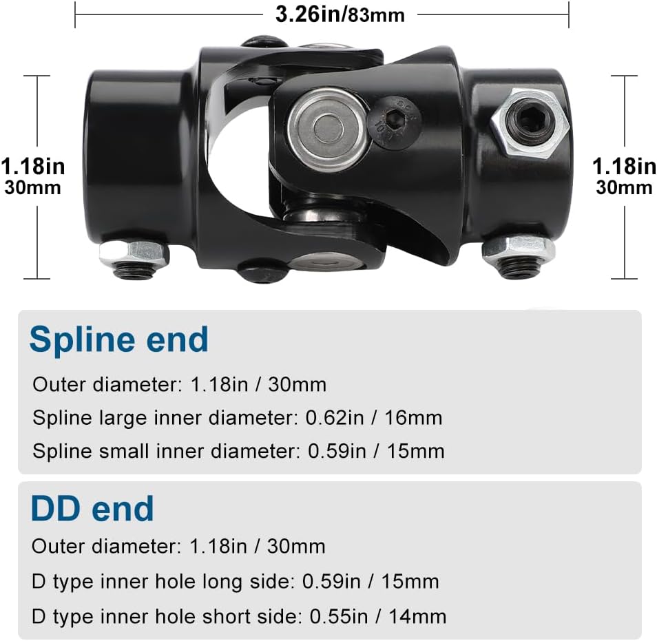 • For automotive parts, for example compatible with steering shaft Mustang II Chevy pick-up Dodge Dakota Ford Pontiac Ram VW Bug SUV jeep and most brands of cars. Ujoints shaft compatible with rock crawler, muscle car, street rod, hot rod or sand rail, etc, and also fits grinding machines, automated partking lifts, levelers, sea valves on boat, etc
