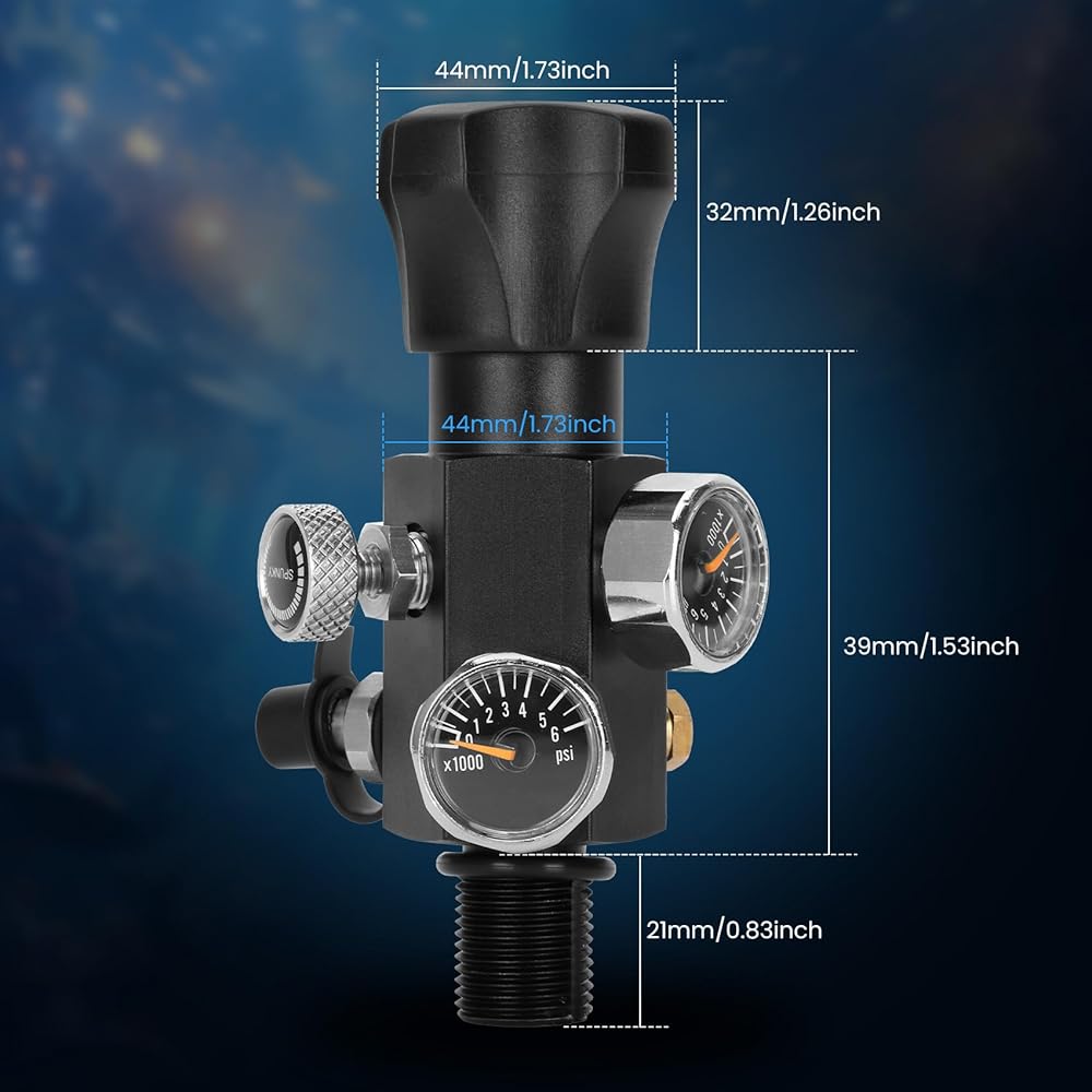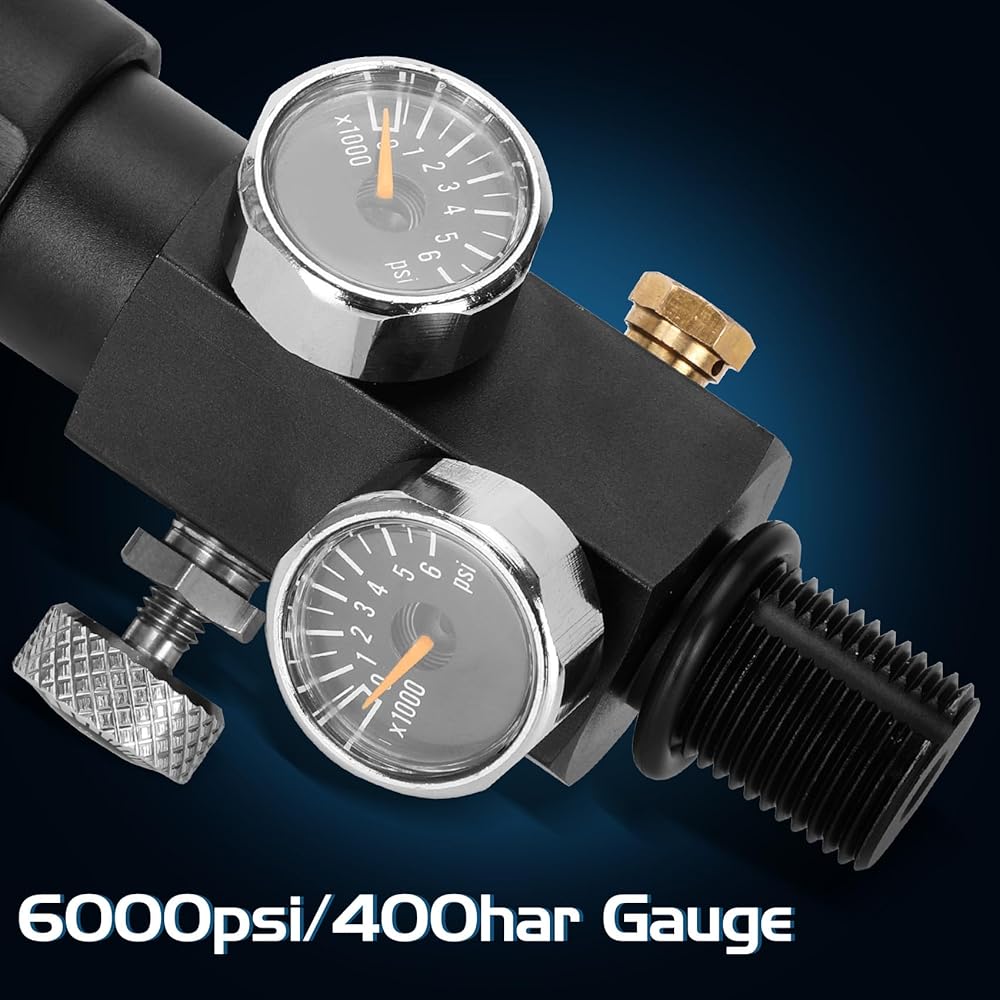 【Support High Pressure】The valve scuba adapter could resist working pressure up to 300-400 Bar / 4000-5500 PSI, with a gauge to indicate the pressure