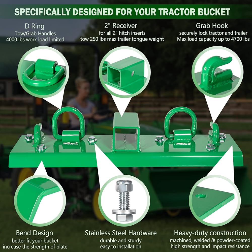 Heavy Duty Bolt on Compact Tractor Grab Hooks 2" Receiver fit for John Deere 1025R 2320 2520 2720 2025R 2032R 2038R 3032E 4010 4100 4110 4115
