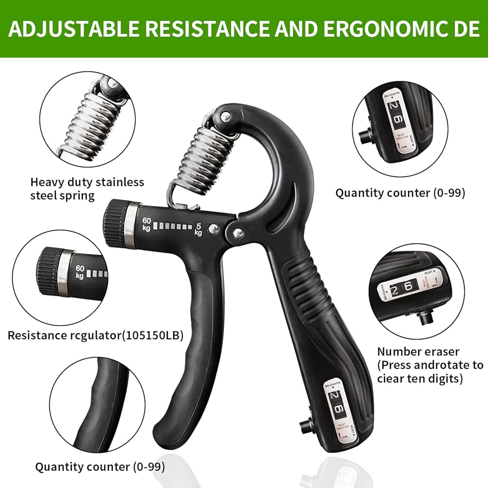 Adjustable Resistance Forearm Grip - Designed with adjustable resistance from 11-132lbs, the hand grip strengthener is effective to develop dexterity of the fingers hands wrist, and forearm by increasing or decreasing the tension.