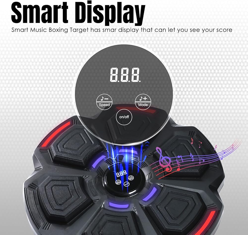 • 🎶 【شاشة ذكية】تم تجهيز الموسيقى المثبتة على الحائط بجهاز الملاكمة بشاشة لمس ذكية مع وظيفة العد الذكية، وقادرة على تسجيل كل ضربة، مع مكبرات الصوت، وتأثيرات الإضاءة، ودعم تعديل وضع 9 سرعات.