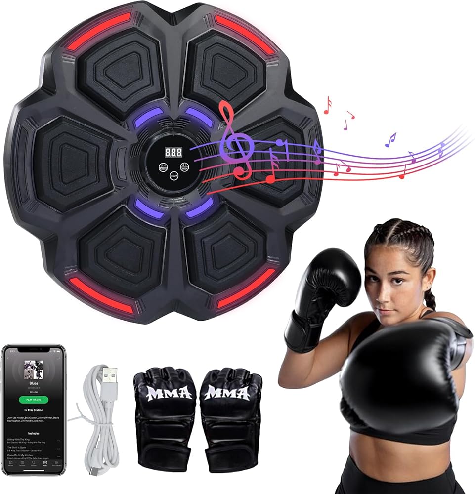 آلة ملاكمة الموسيقى، آلة ملاكمة بلوتوث ذكية جديدة مثبتة على الحائط مع قفازات ملاكمة، آلة تثقيب الموسيقى المنزلية للبالغين والأطفال