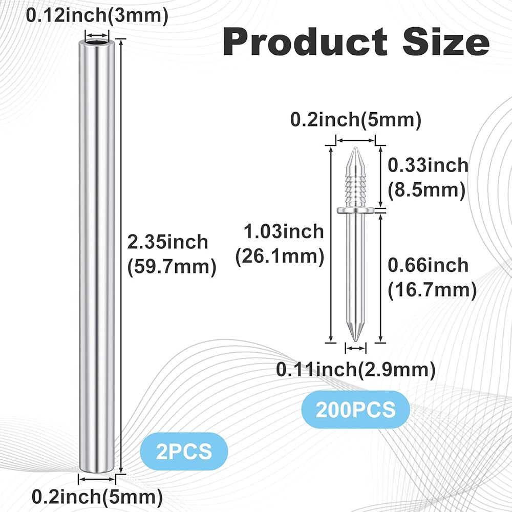 200 قطعة من أظافر Joez الرائعة ذات الرأس المزدوج بدون خياطة، أظافر مزدوجة الجوانب مع قطعتين من أدوات الأكمام، براغي أمان غير مرئية للوحات القاعدة (0.2 بوصة × 2.35 بوصة)