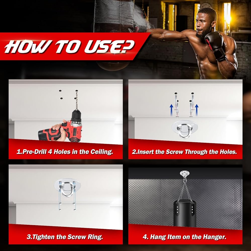 دعامة للحقيبة الثقيلة: مثالية لتعليق أي كيس ملاكمة يصل وزنه إلى 1000 رطل للملاكمة أو الفنون القتالية المختلطة أو Muay Thai أو غيرها من الرياضات التي تتطلب الاتصال. يمكن للتصميم القوي والمتين أن يتحمل التدريبات المكثفة ويدعم أهداف اللياقة البدنية الخاصة بك.