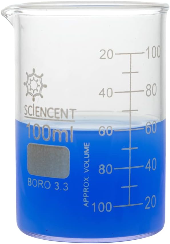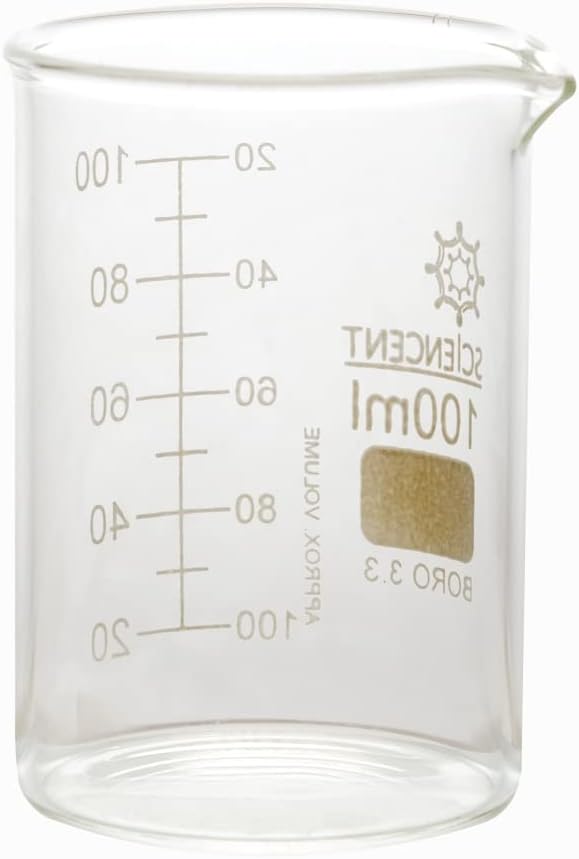 Truly transparent and high quality graduated Glass Beaker. Reusable, durable, and chemical resistant and can handle extreme reactions. A precise measuring beaker 100ml Single Piece