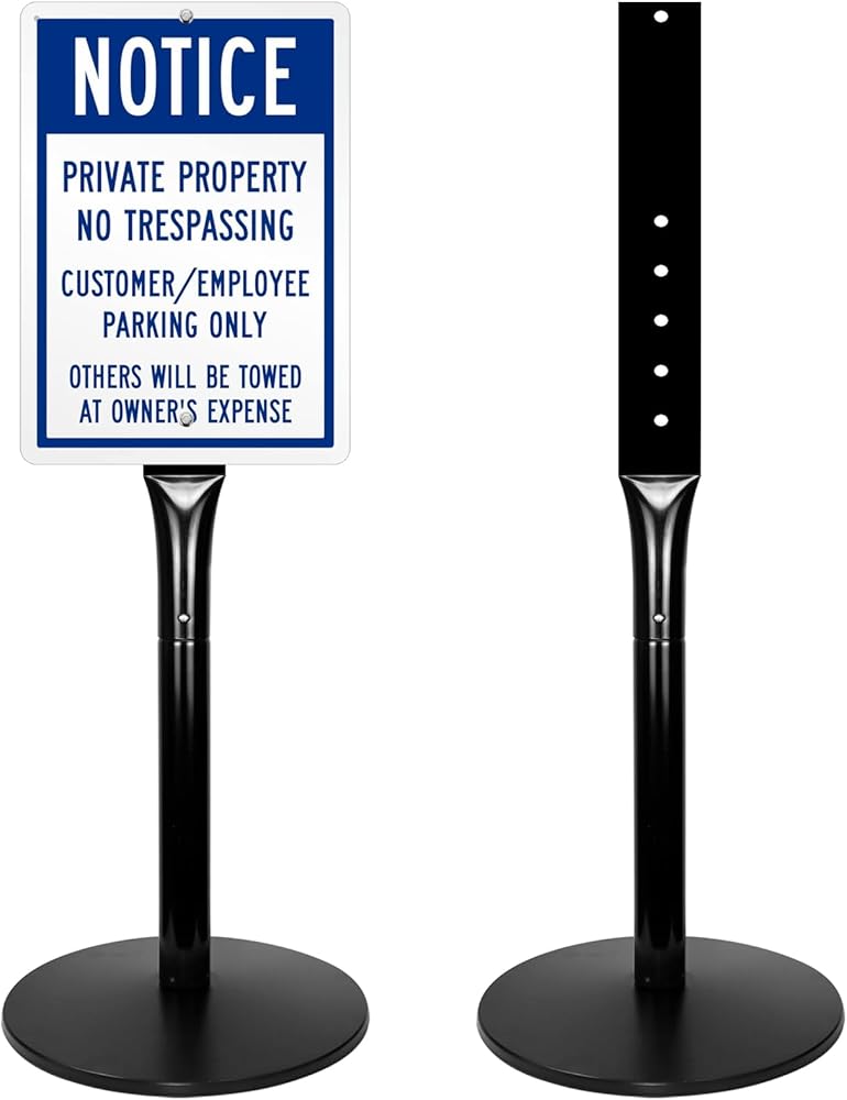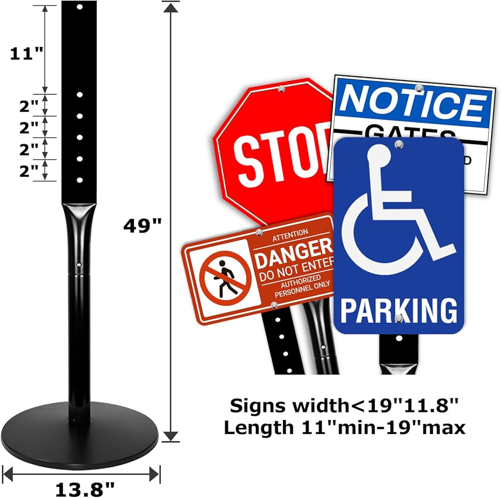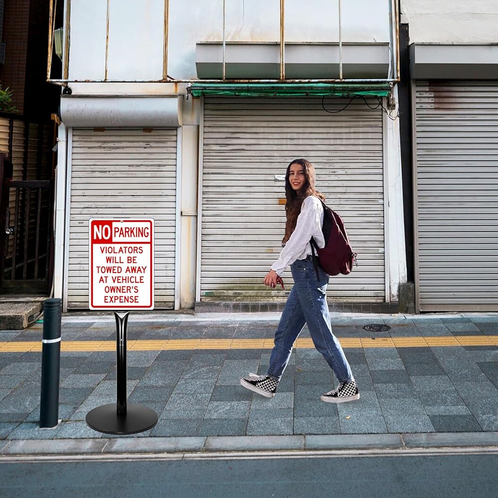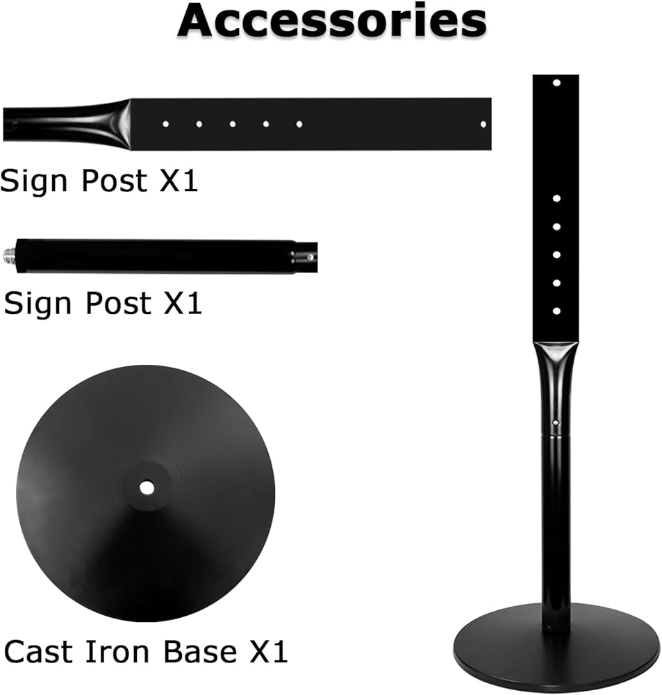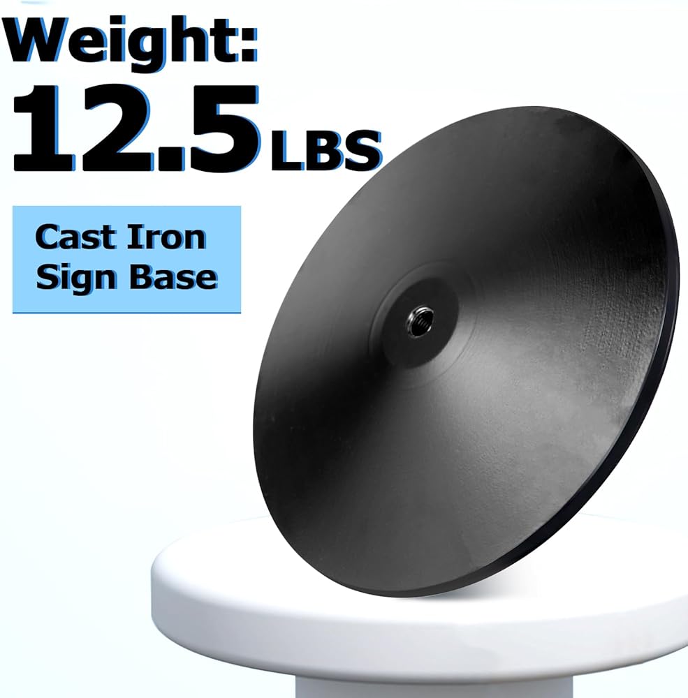 -Heavy duty cast iron sign base is 20 pounds, Stable and difficult to tip over, It is suitable for busy parking areas or indoor and outdoor public places to displaying signs.