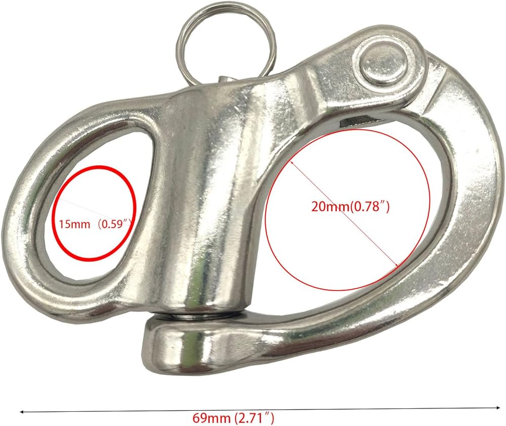 - --2-5/8”(69mm) Inches 316 Stainless Steel Fixed Bail Snap Shackle