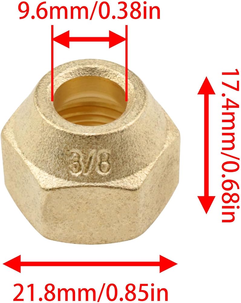 • The 3/8 female flare nut is used for the flaring joint at the end of the copper pipe to provide a strong connection to the fixed point through the threaded joint. This is especially important for handling large amounts of water pressure or high gas distribution and is ideal as an alternative to welded joints.