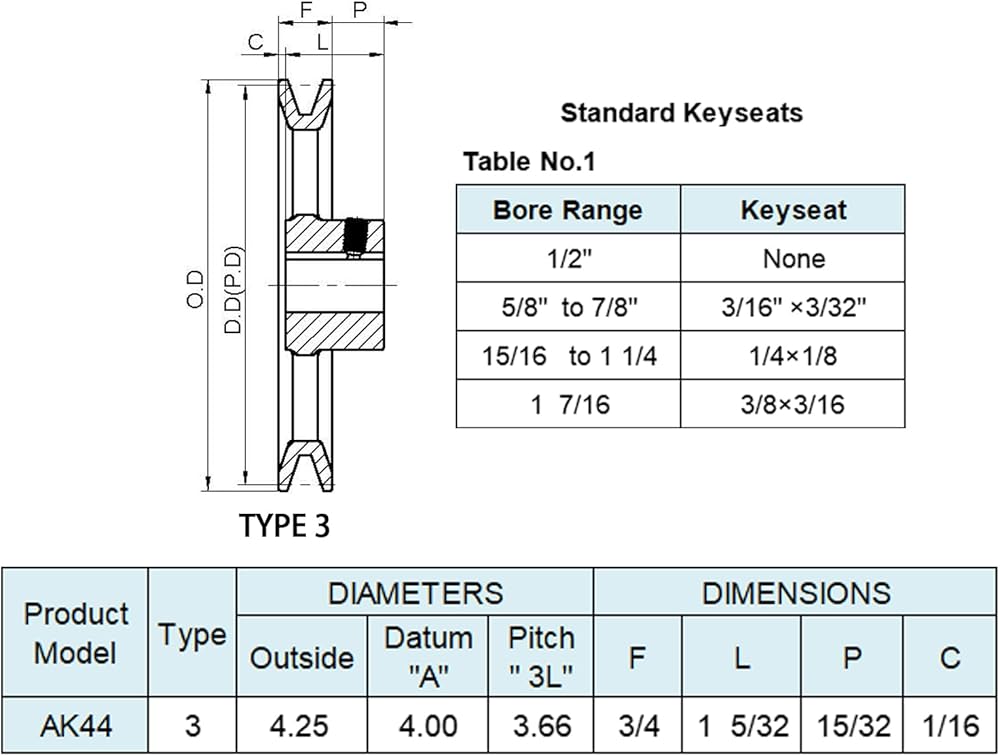 بكرة الحزام V القياسية: تستخدم لأحزمة V "A" أو "3L" أو "4L"