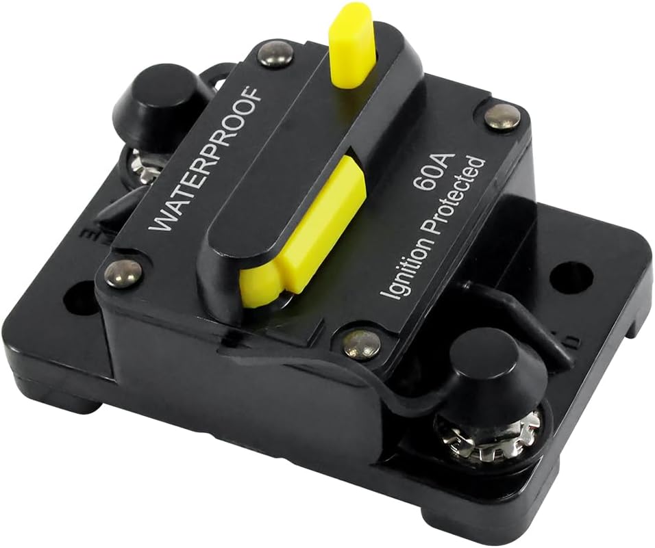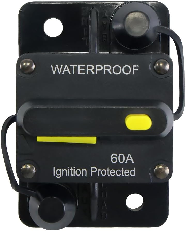 1865115 MKR-27 قاطع دائرة 60 أمبير مع مسامير من الفولاذ المقاوم للصدأ 1/4 بوصة وعازل واقي متوافق مع محركات التصيد الكهربائية 12 فولت/24 فولت/36 فولت/48 فولت