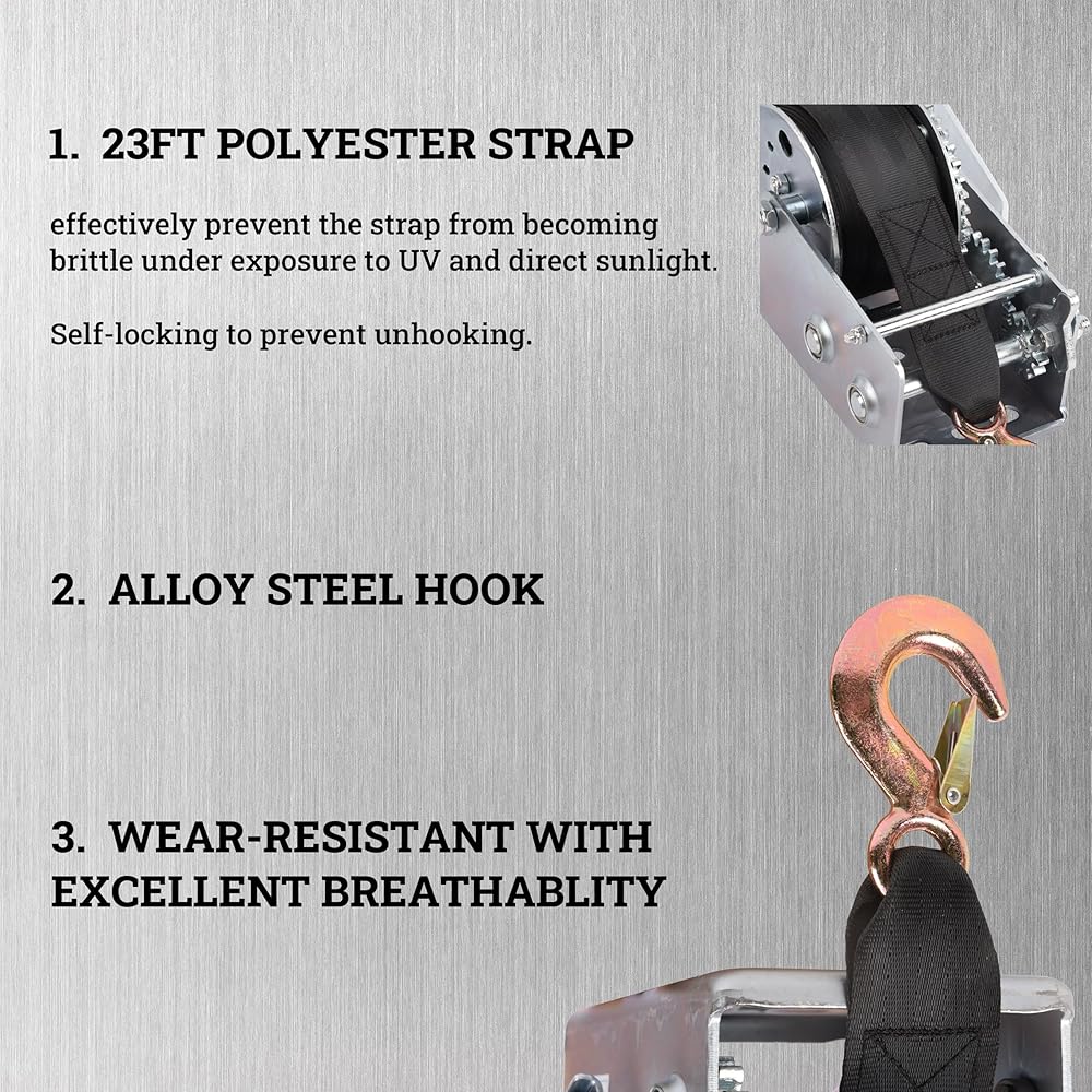 🔧【مادة فاخرة】رافعة القارب مصنوعة من الفولاذ الفاخر، لمسة نهائية مجلفنة، يمكنها أن تمنع التآكل ومقاومة الصدأ بشكل فعال. يمنع حزام البوليستر عالي القوة الحزام بشكل فعال من أن يصبح هشًا تحت الأشعة فوق البنفسجية وأشعة الشمس المباشرة. قفل ذاتي لمنع الفك.