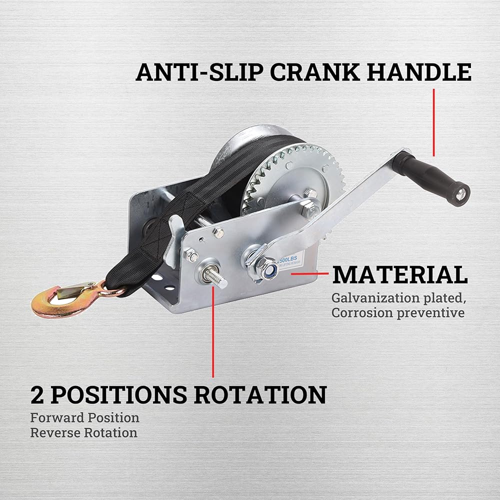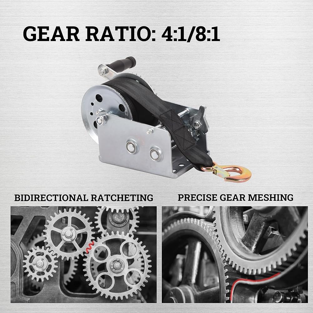 🔧【سعة تحميل 2500 رطل】قوة السحب لرافعة الهيكل الفولاذي شديدة التحمل تبلغ 2500 رطل، ونسبة تروس الفولاذ عالي الكربون هي 4:1 (نسبة السرعة الأساسية)/8:1 (نسبة السرعة الثانوية)، مما يقلل من إنتاج العمل. ويحصل على قدر أكبر من الجر.