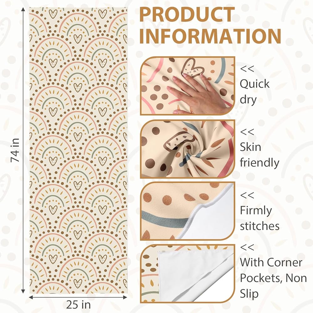 Versatile Usage Options: the boho style yoga mat towel can be firmly fixed on the mat during the practice process, better protect you to feel comfortable when doing any posture, suitable for all types of yoga, such as hot yoga, pilates, meditation and other sports