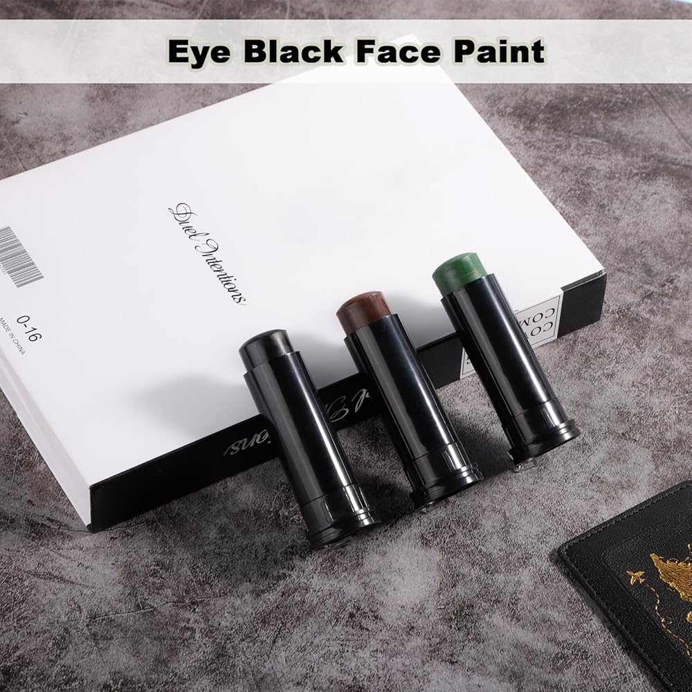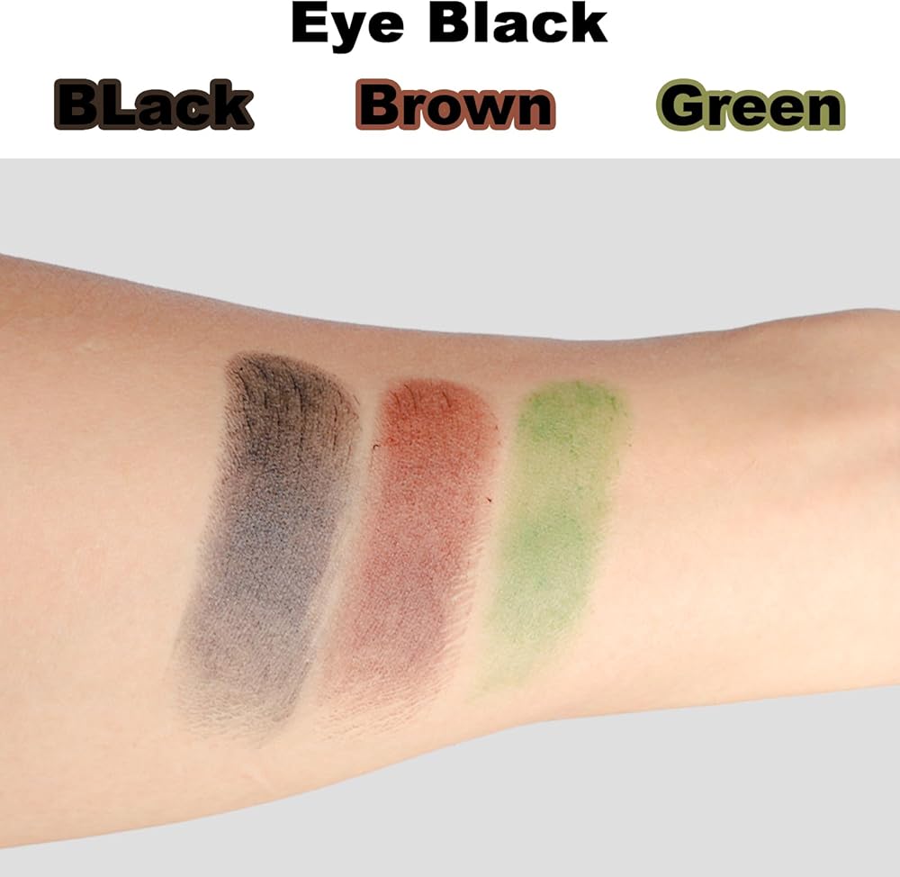 3 قطع من عصا العين، أنبوب ألوان عصا طلاء الجسم باللون الأسود للعين للرياضة، البيسبول البيسبول لاكروس كرة القدم الرياضيين، أزياء الهالوين التنكرية، مكياج الحفلات (أسود، بني، أخضر)