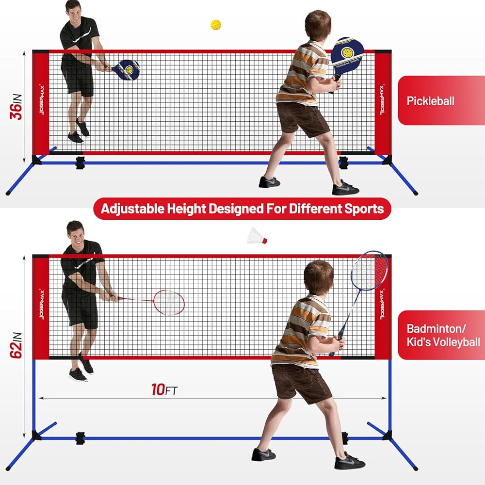 مجموعة كرة الريشة قابلة للتعديل للفناء الخلفي، مجموعة كرة مخلل الكل في واحد بطول 10 أقدام وشبكة كرة طائرة للأطفال مع مجاذيف ومضارب، شبكة رياضية لممر الشاطئ في الفناء الخلفي