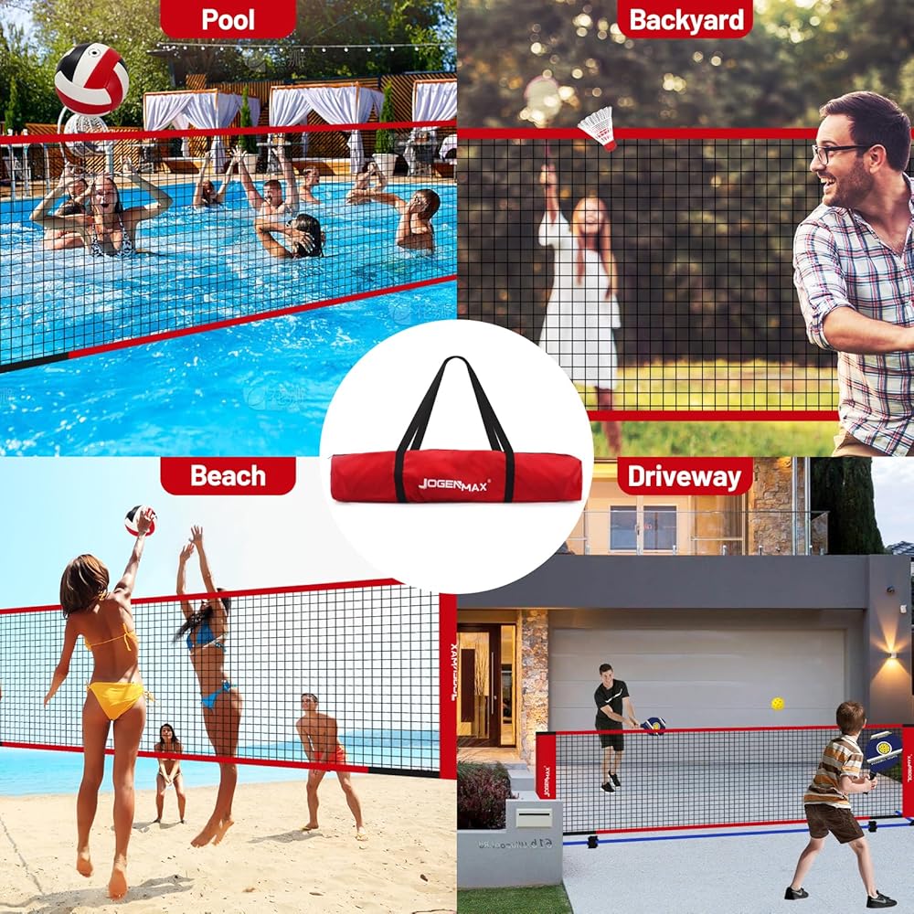 3 في 1: مجموعة كرة الريشة الخارجية تتضمن كل ما تحتاجه: شبكة بطول 10 أقدام؛ أعمدة التركيب مجموعة كرة الريشة (4 مضارب كرة ريشة و3 كرات مخلل)، مجموعة كرة مخلل (2 مضارب كرة مخلل و4 كرات مخلل)، كرة طائرة مع مضخة هواء وحقيبة حمل.