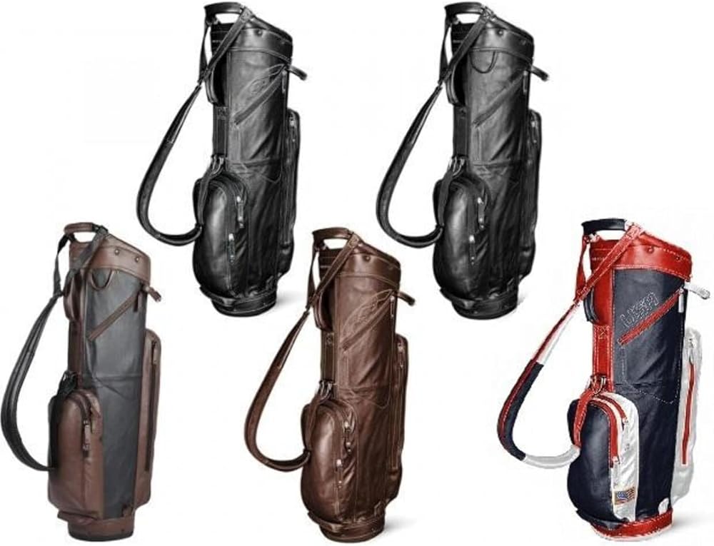 Distinguished by its ample belly pocket, the Leather Cart Bag is designed for cart use but at five pounds it could just as easily be carried. Top: 9 in, 4-way, Pockets: 4, Strap: Single Strap.