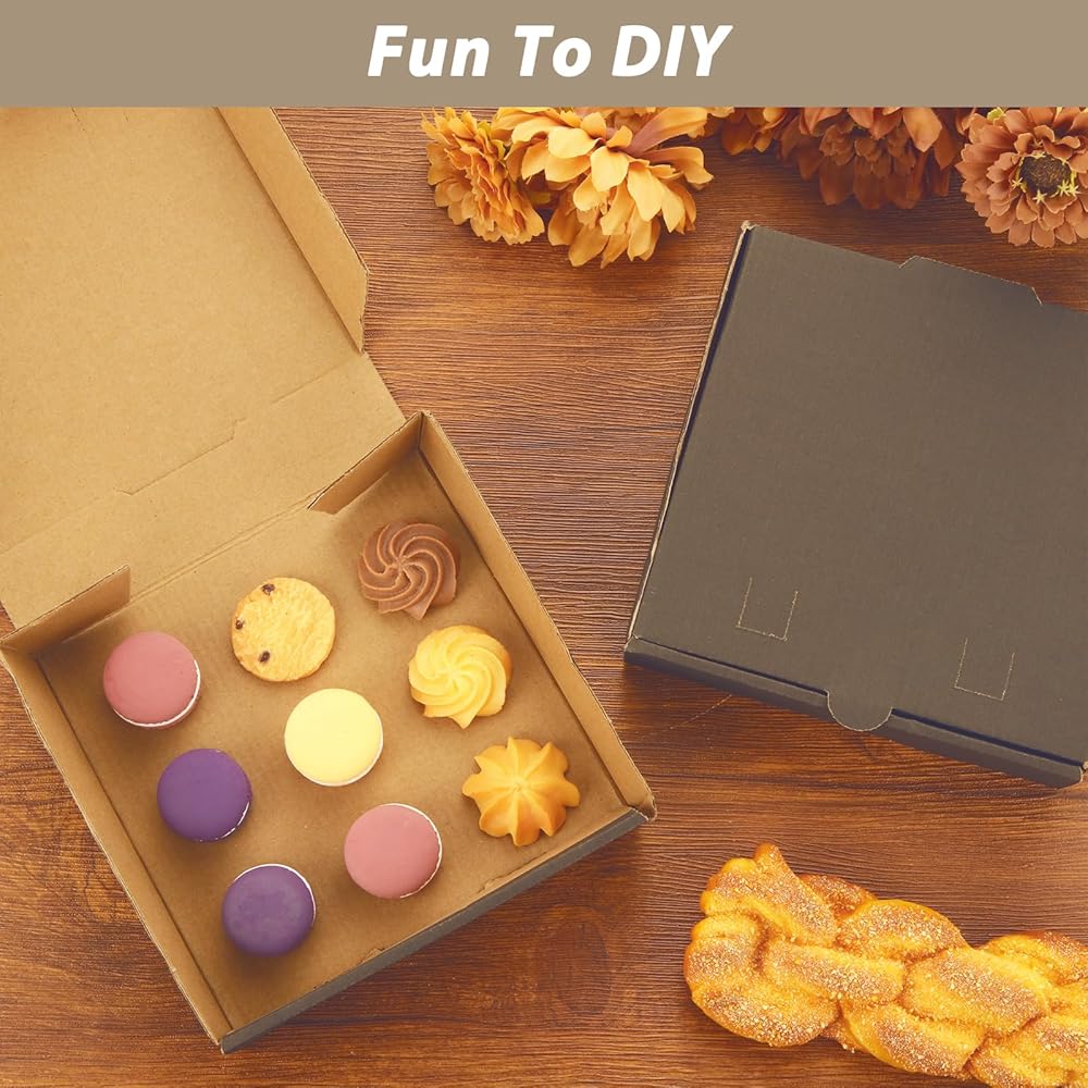 - Measuring 6.3 x 6.3 x 1.77 inches, these corrugated cardboard boxes are ideal for small pizzas, mini pies, cookies, party favors, crafts, and more. The perfect choice for mailing, shipping, gift giving, or storing items