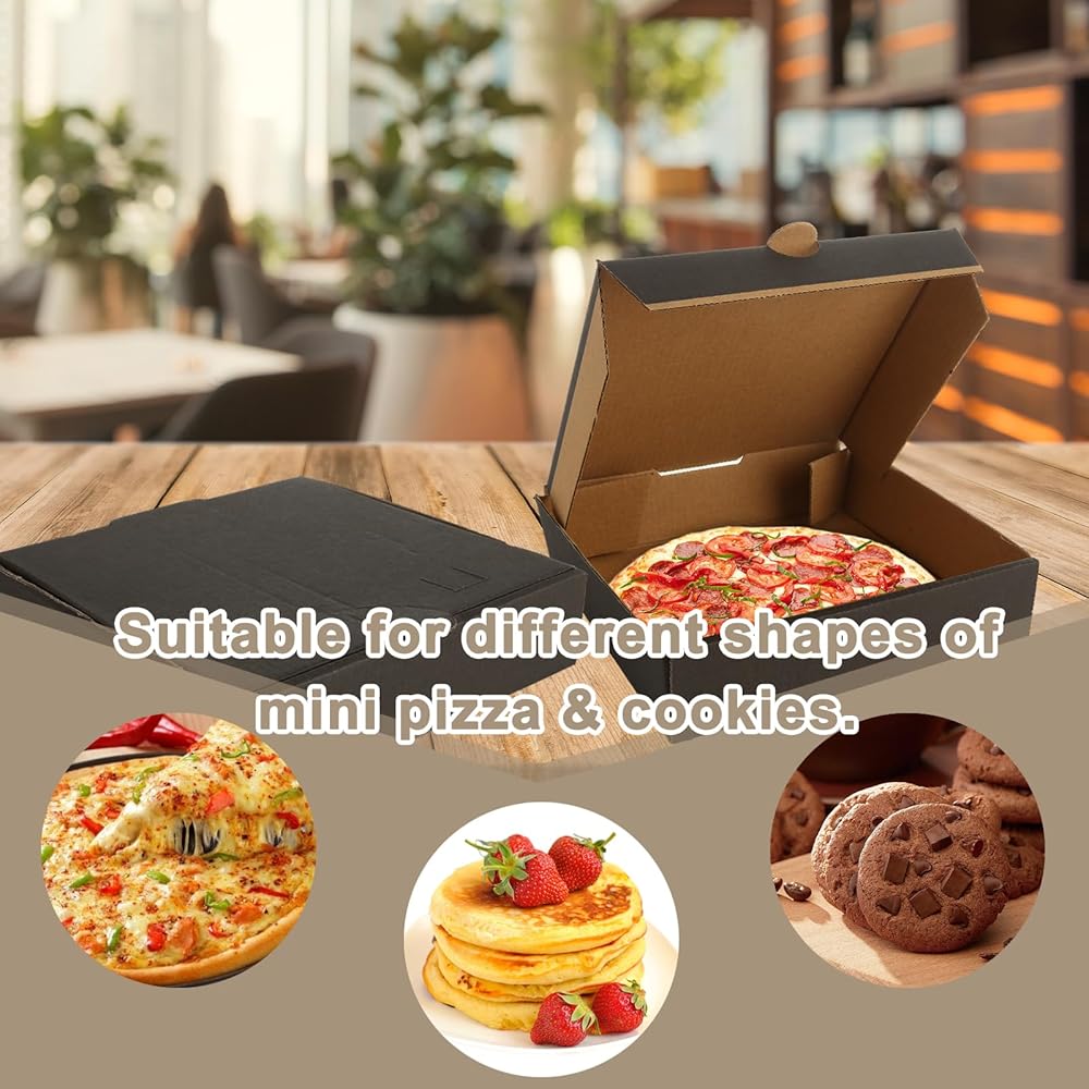 CYEAH 40 Pack Pizza Boxes, 6.3 x 6.3 x 1.7 Inch Corrugated Mini Pizza Boxes, Black Take Out Small Pizza Packing Boxes, Takeaway Mailing Shipping Storage Boxes for Pizza, Cake, Cookies, Food