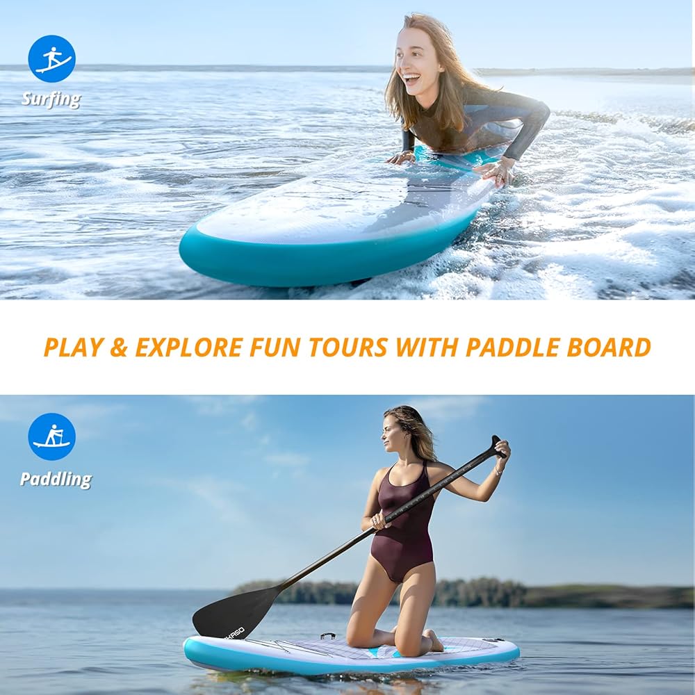• Speed-oriented Touring Paddle Board: The size of the board is 10' long, 32 '' wide and 6 '' thick. With 1 removable fin and 2 fixed fins, providing better maneuverability and faster speed. If you prefer long distances, this touring board will provide maximize gliding and paddle efficiency.