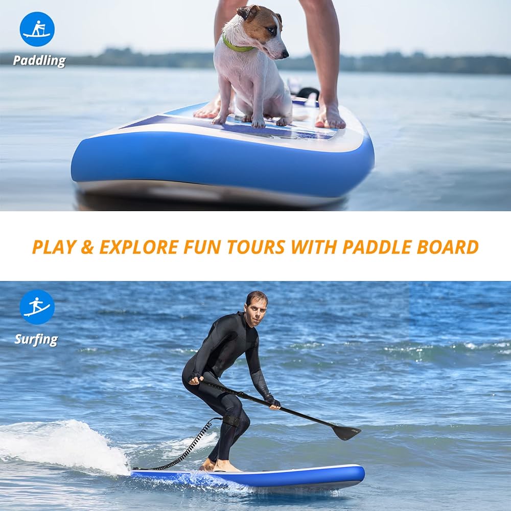 • Speed-oriented Touring Paddle Board: The size of the board is 10' long, 32 '' wide and 6 '' thick. With 1 removable fin and 2 fixed fins, providing better maneuverability and faster speed. If you prefer long distances, this touring board will provide maximize gliding and paddle efficiency.