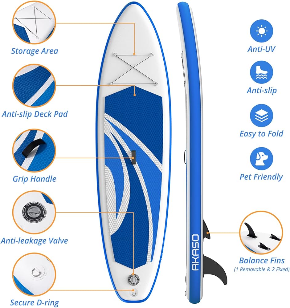 لوح التجديف القابل للنفخ من AKASO، لوح تجديف قابل للنفخ مقاس 10x30x6، لوح تجديف للبالغين - أزرق