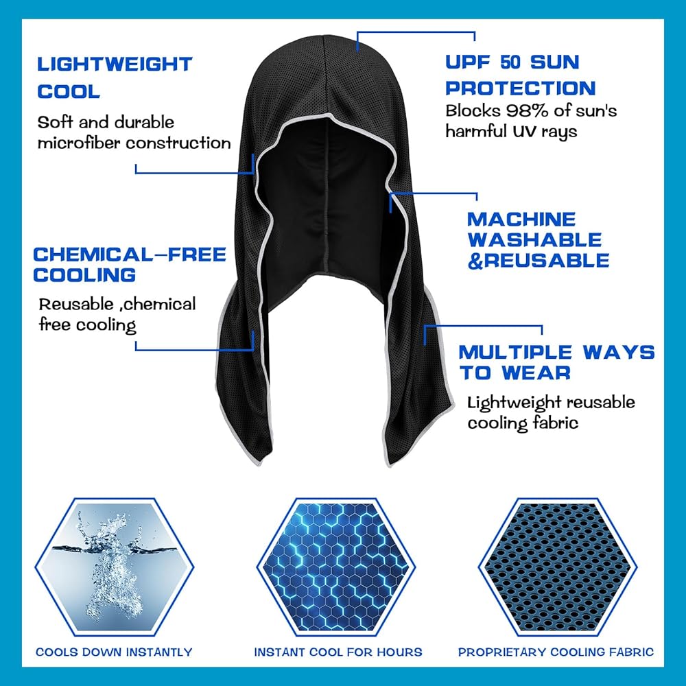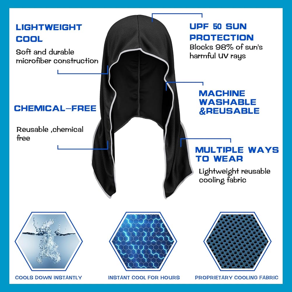 خامة عالية الجودة: غطاء رأس التبريد مصنوع من مادة خفيفة الوزن وناعمة في الاستخدام، ولن تتلاشى أو تتمزق بسهولة؛ لا يمكن أن يجعلك تشعر بالانتعاش فحسب، بل يوفر أيضًا حماية من أشعة الشمس بعامل حماية من أشعة الشمس بدرجة 50 لمساعدتك على الاستمتاع بالصيف
