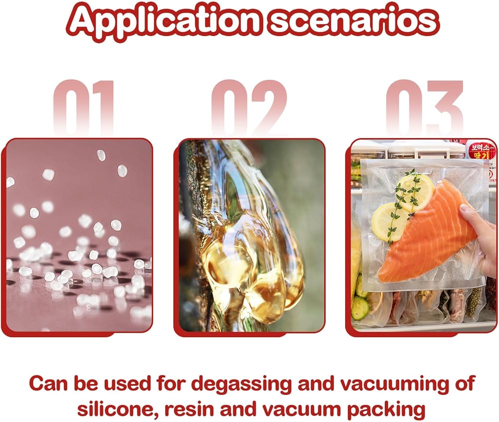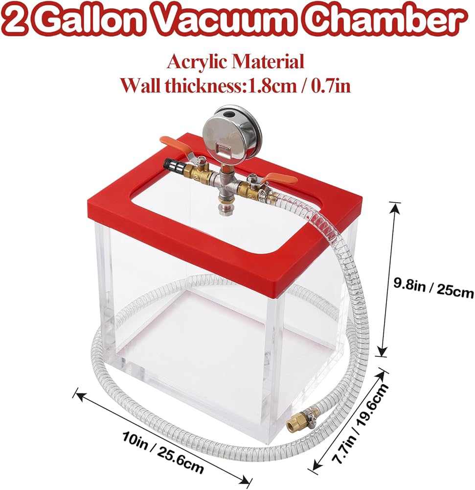 تطبيقات متعددة الاستخدامات: مثالية لإزالة الغازات من السيليكون والراتنج والبولي يوريثين، تعتبر غرفة التفريغ هذه مثالية لمجموعة واسعة من المشروعات التي تصنعها بنفسك، مما يضمن نتائج عالية الجودة في كل مرة.