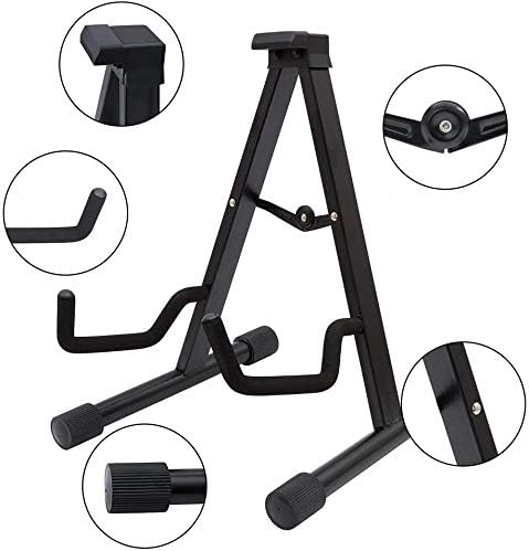 Guitar Stand Full Folding Steel Universal A frame Stand for All Guitars Acoustic Classic Electric Bass Travel Guitar Stand, Black