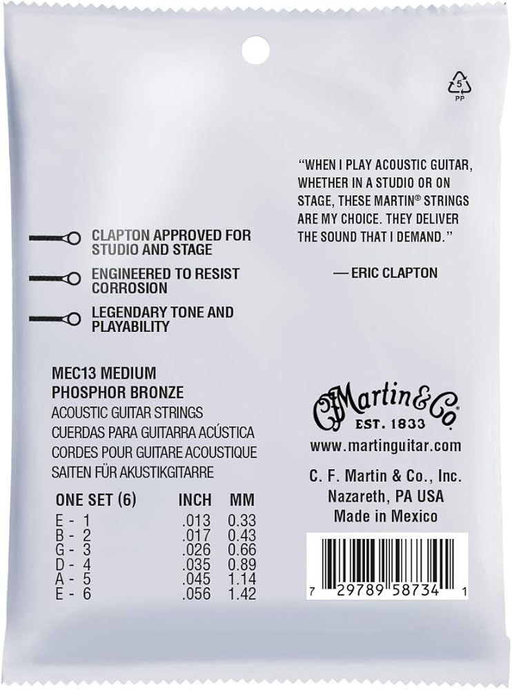 مارتن MEC13 كلابتون اختيار سلاسل الغيتار الصوتية الفوسفور البرونزية، متوسطة