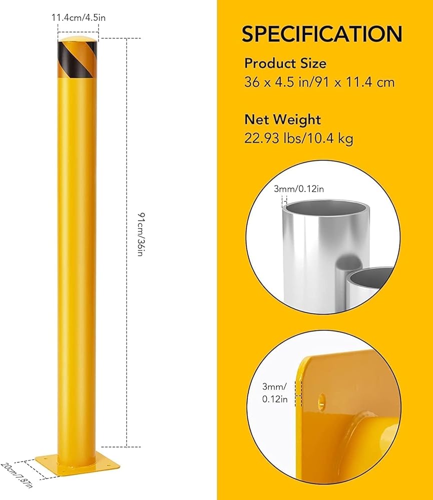【حماية شديدة التحمل】قم بحماية المساحة الخاصة بك من خلال عبوات حاجز الأمان المكونة من 6 قطع المصنوعة من فولاذ Q235 المتين، والمصممة لتحمل التأثيرات ومنع الضرر. تأكد من السلامة والأمان باستخدام هذه الأعمدة الفولاذية ذات الارتفاع 36 بوصة وقطر 4.5 بوصة.