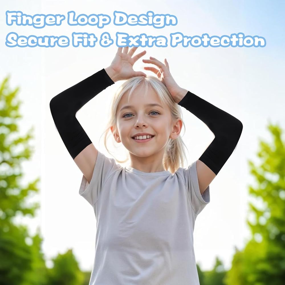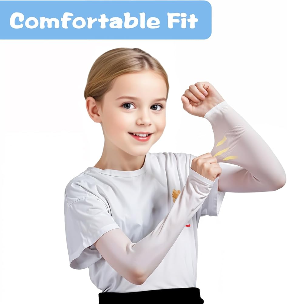 Material - Our youth arm sleeves is made from comfortable, ultra-thin fabric that is breathable, ensuring your child stays dry and comfortable during outdoor activities