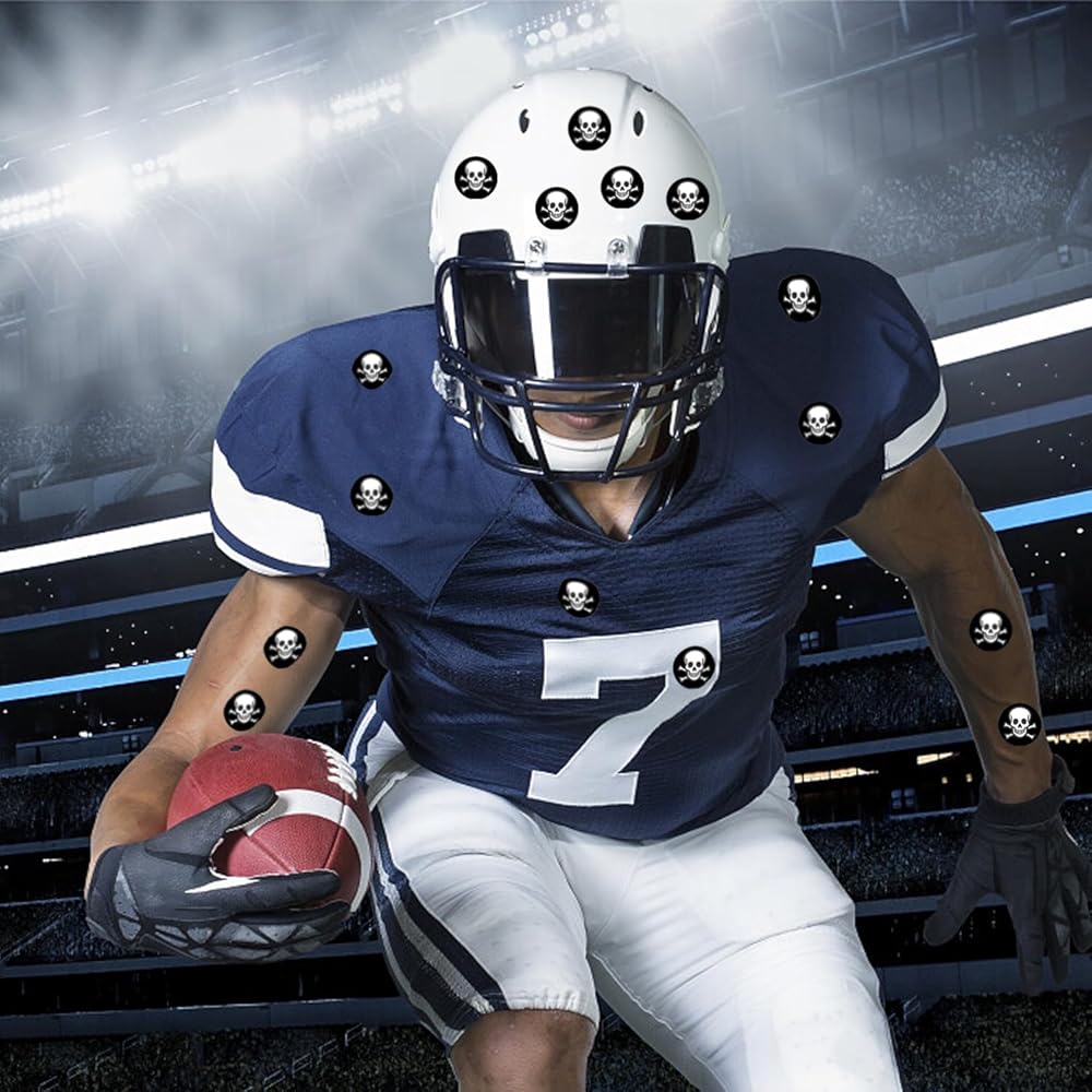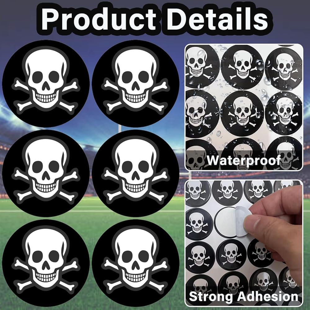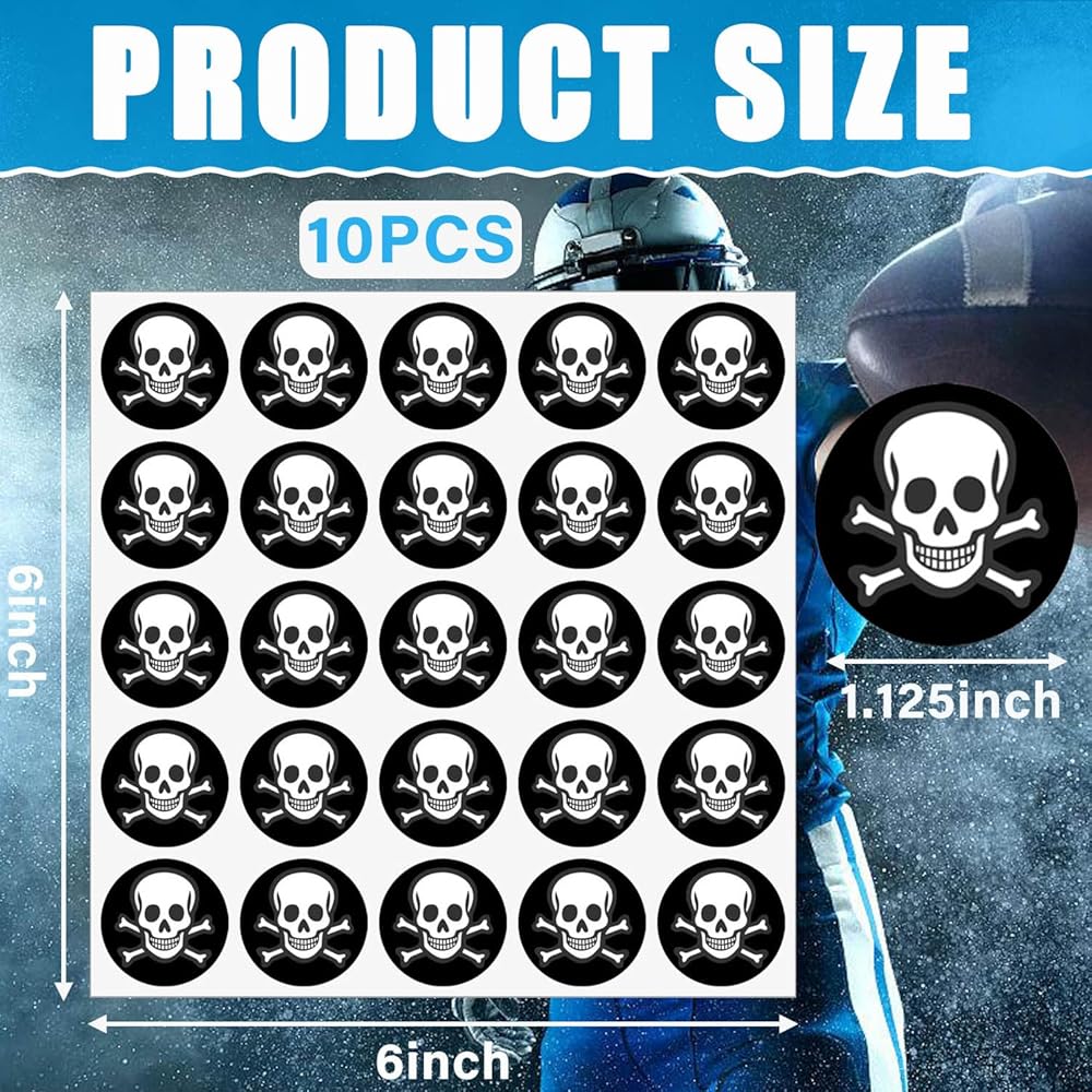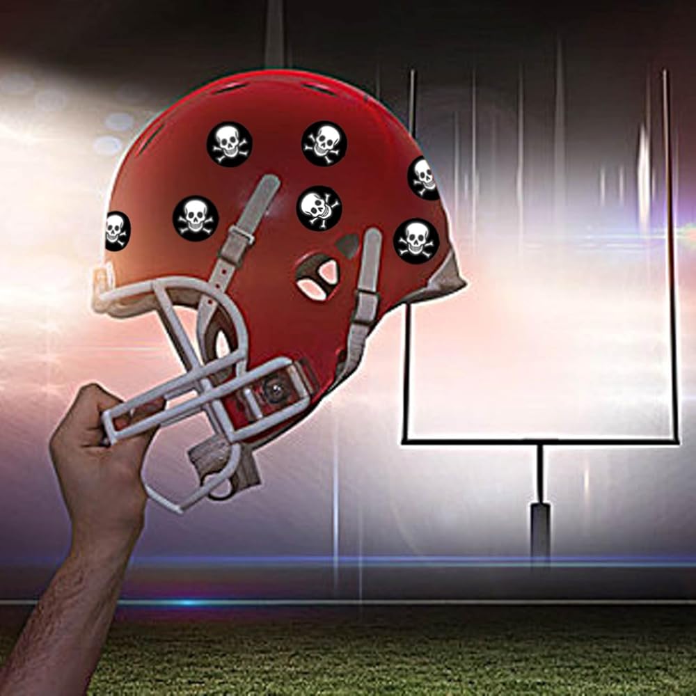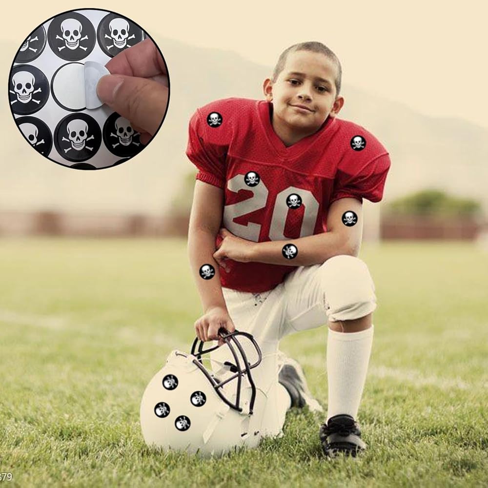 شارات جائزة خوذة جمجمة كرة القدم للشباب، ملصقات ذاتية اللصق من الفينيل مقاس 1-1/8 بوصة لكرة القدم والبيسبول والهوكي والكرة اللينة وخوذات لاكروس (250 قطعة، 10 ورقات)