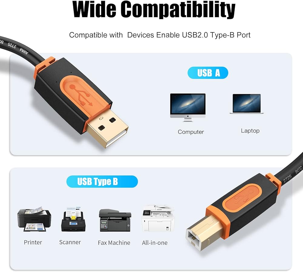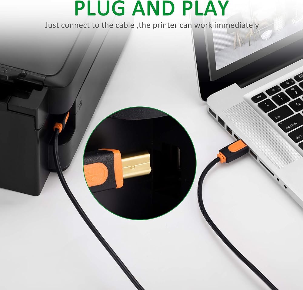 - كابل طابعة USB يدعم معظم الطابعات/الماسح الضوئي في السوق بما في ذلك Dell وCanon. إتش بي، الأخ، إبسون، لكسمارك، سامسونج الخ.