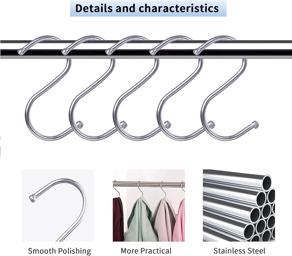 خطافات S للمنزل من الستانلس ستيل - 5 قطع 1.5 * 2.6 بوصة
