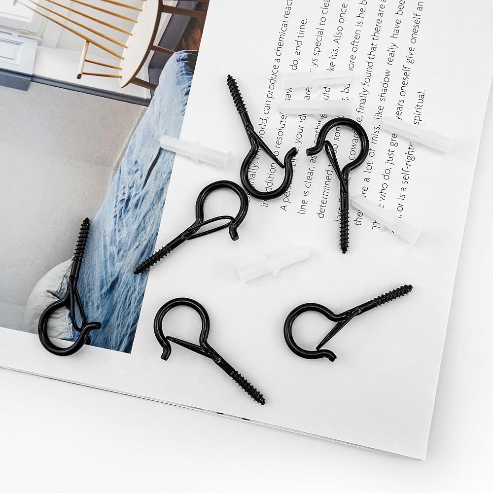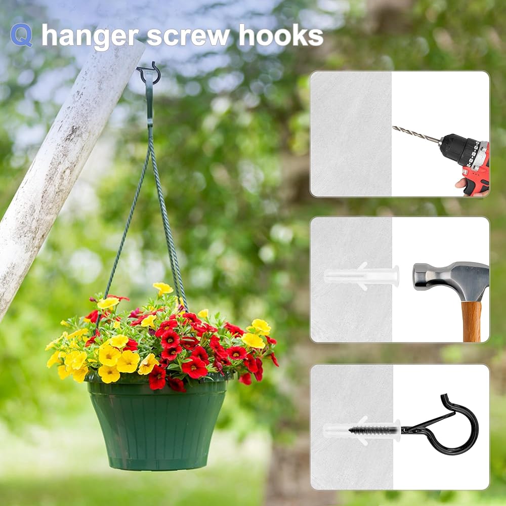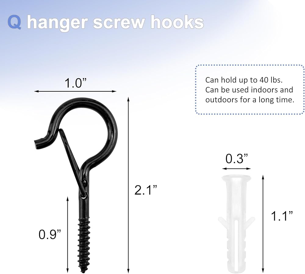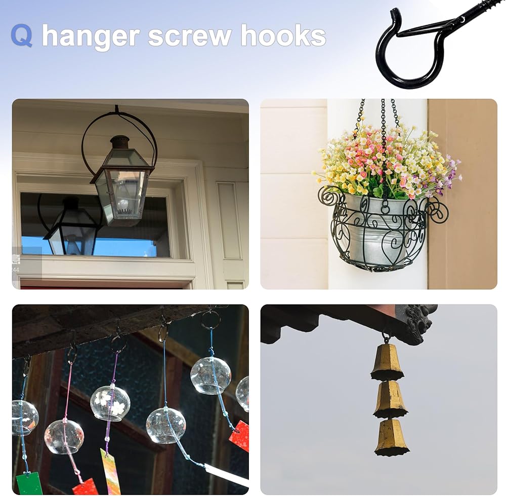 6 قطع من خطافات Quacc مع مشبك أمان، حامل سقف خشبي على الحائط، برغي في خطافات لتعليق أضواء السلسلة الخارجية، النباتات، أجراس الرياح، أضواء عيد الميلاد (أسود)