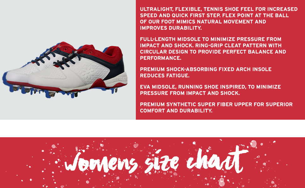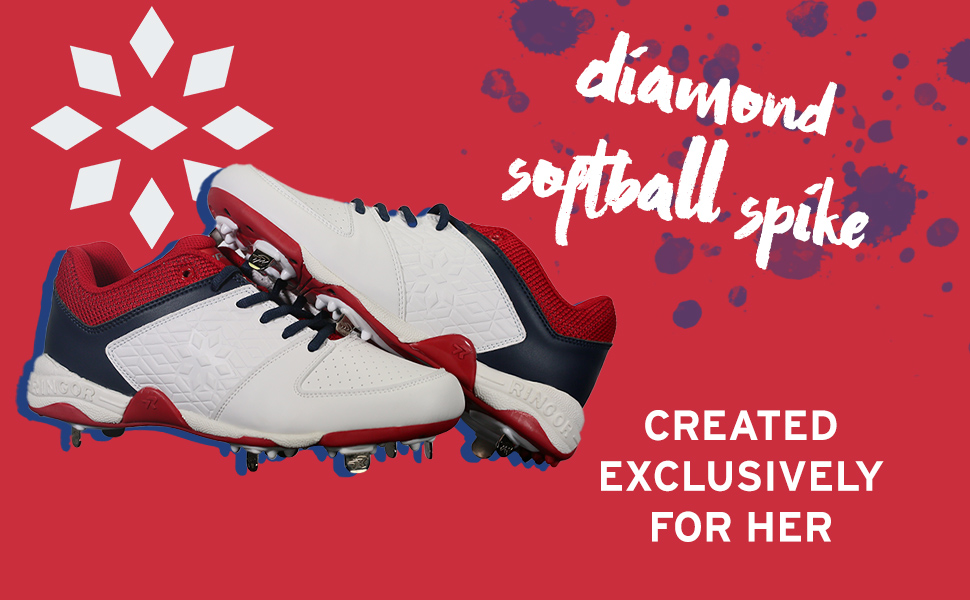 حذاء RIP-IT النسائي ذو الكرة اللينة الماسية - مقاس 10 - أحمر/أبيض/كحلي